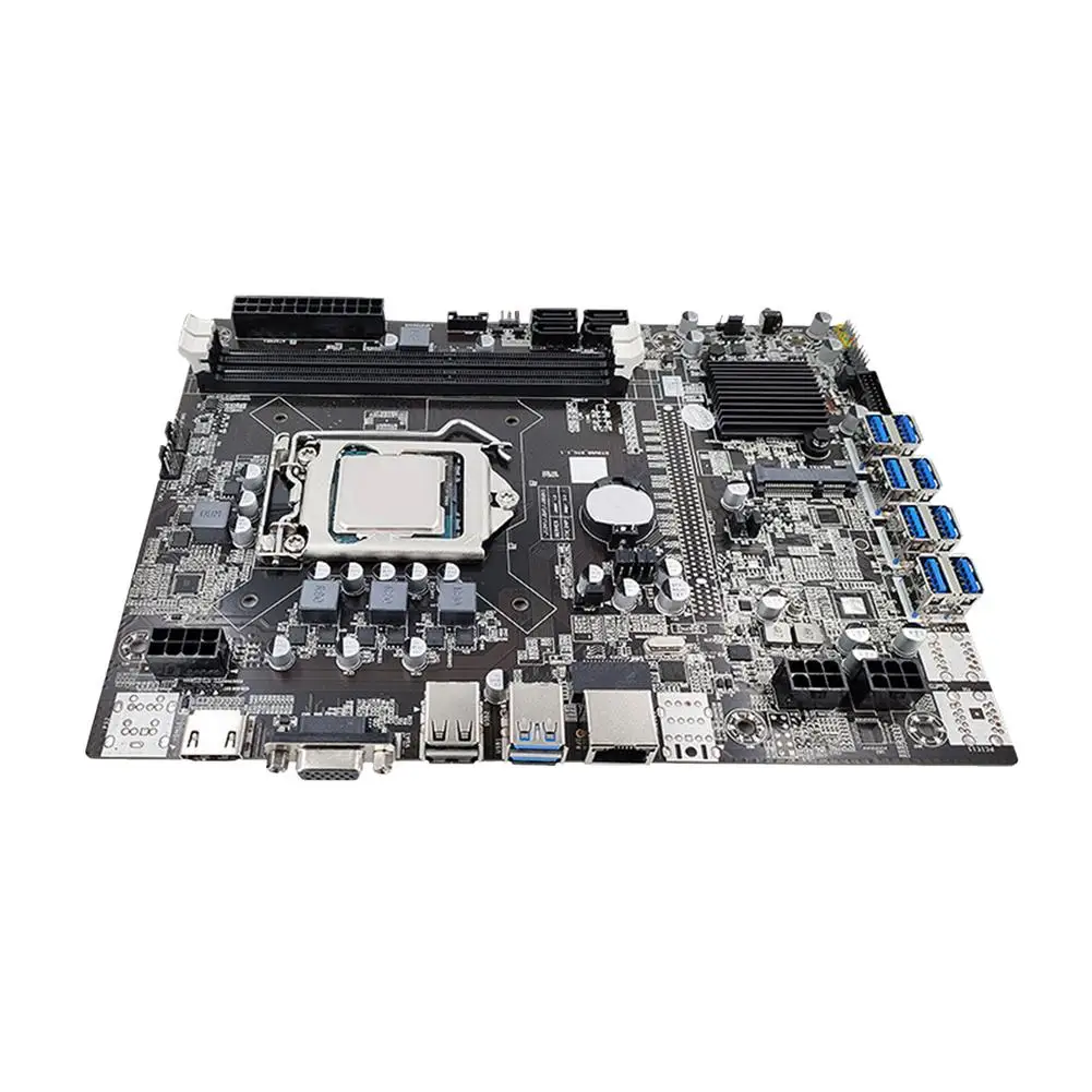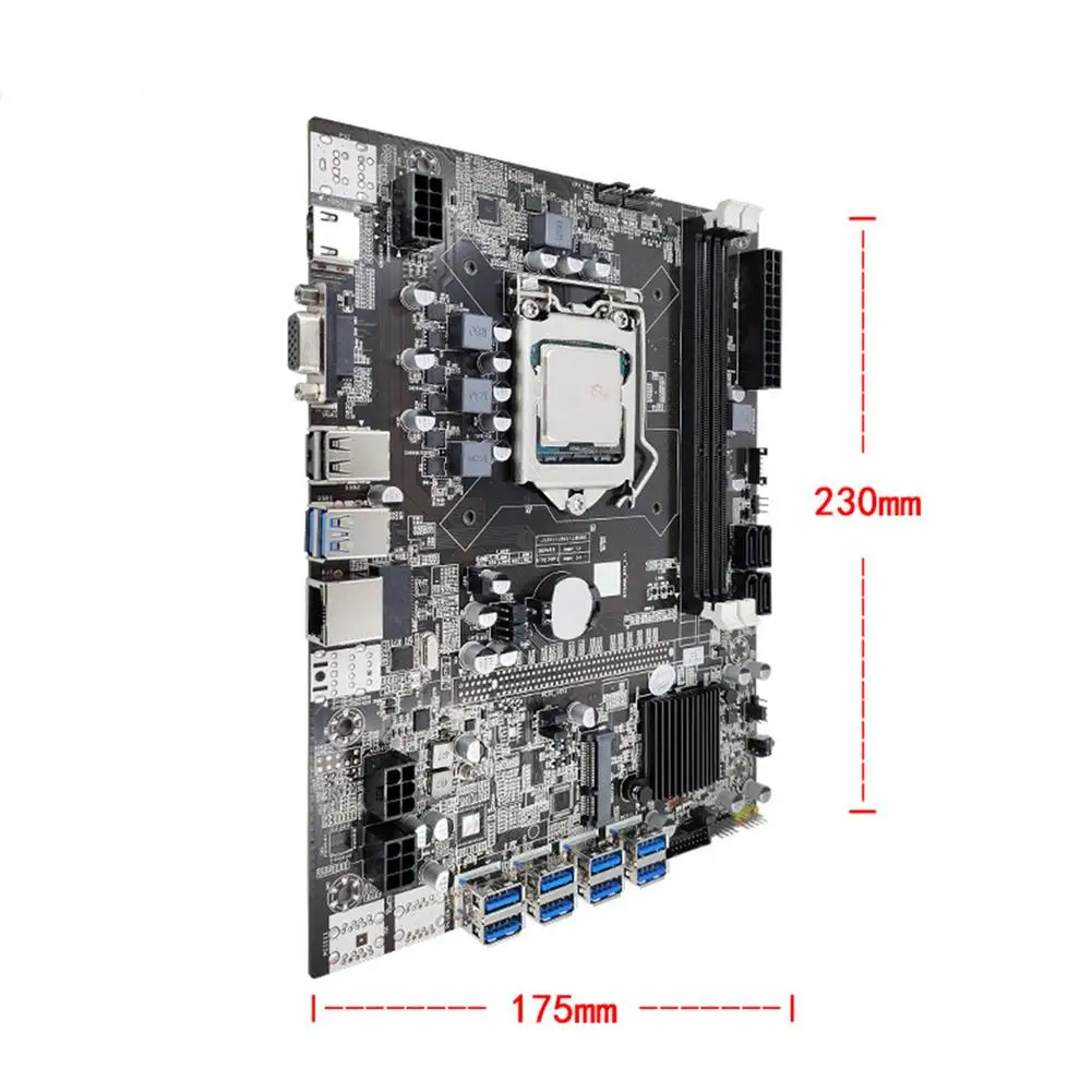 1. Поддержка до 32 Гб: Поддержка 32 Гб, 1 слот PCI-E x 8 и поддержка 32 ГБ для максимального расширения подключения и скорости майнинга.2. Длительный срок службы: материнская плата принимает более безопасное гнездо, LAN и аппаратный уровень защиты от перенапряжения для обеспечения срока службы и надежности компонентов.3. Защита от стабилизации напряжения: конденсатор стабилизации напряжения обеспечивает стабильное напряжение для вашего устройства питания на GPU.4. Состояние обнаружения: обнаружение состояния слота PCI-E указывает на состояние каждого графического процессора на вашей платформе в режиме реального времени.5. Идеально подходит: разработан, чтобы соответствовать оригинальной модели с идеальной заменой и высококачественными компонентами.Описание:Материнская плата для майнинга использует 1 разъем PCI-E x 8, 32 Гб поддержки и 100 м локальной сети для максимального подключения и скорости майнинга. Он оснащен конденсатором стабилизации напряжения и более безопасным ядром гнезда.Характеристики:Модель материнской платы: B75 USB-BTCИнтерфейс процессора: LGA1155Серия GPU: серия LGA1155Размер материнской платы: 230 мм * 175 мм/9,06*6,89 дюймаСетевая карта: 100 м Сетевая картаОбъем поддержки: 16 г * 2Слот для видеокарты: PCI-E X8 * 1Слот для дисплея: стандарт PICE-3.0Интерфейс USB: USB2.0 * 2/USB3.0 * 2Посылка:1 х материнская плата для майнинга