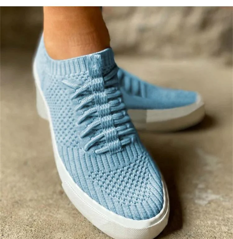 Кроссовки женские легкие, вязаные сникерсы, плоская подошва, на шнуровке, однотонные