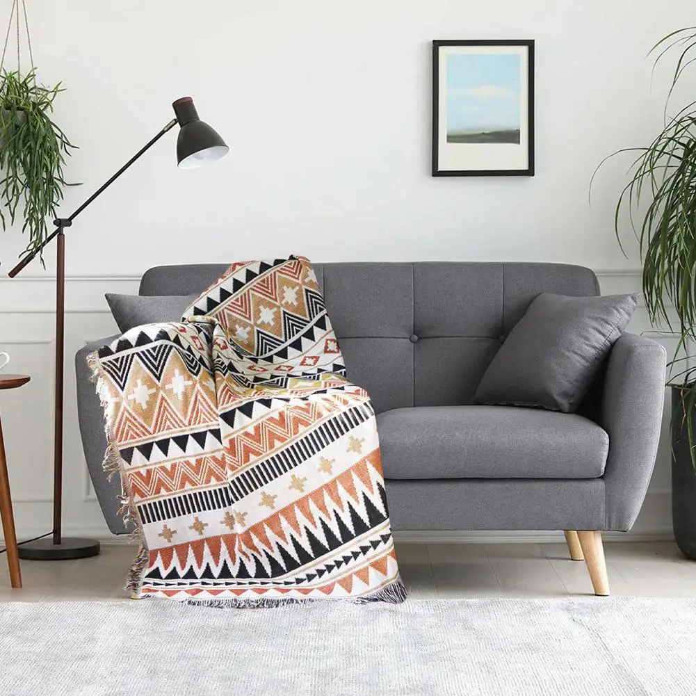Вязаное одеяло с кисточками для дивана, покрывало с богемным узором, цветное покрывало для дивана, мягкое удобное покрывало для дивана