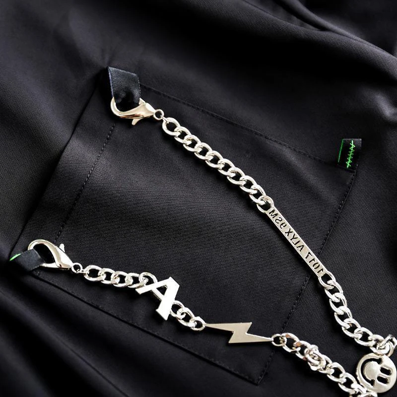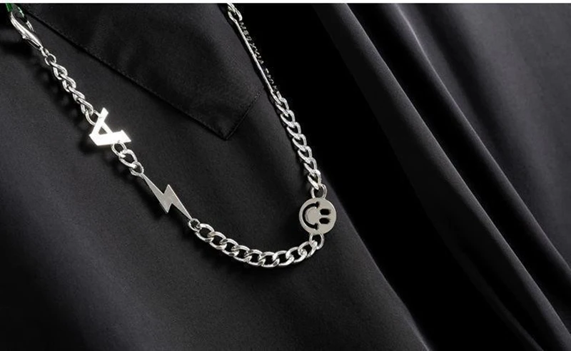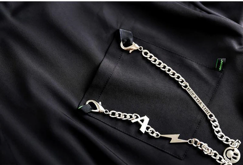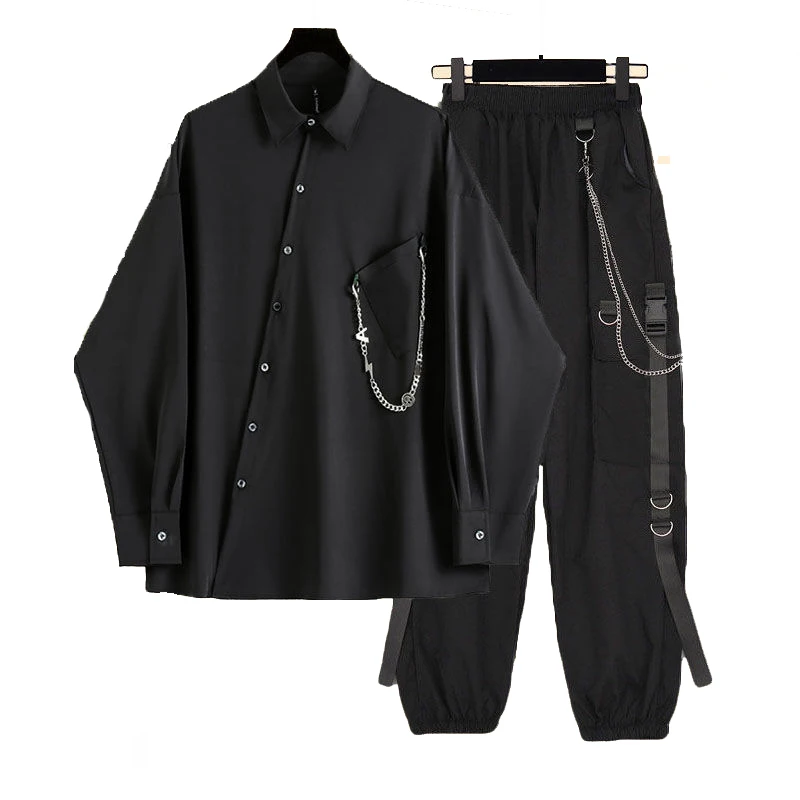 Весенняя хип-хоп Асимметричная цепь, орнаменты, брюки-карго, уличная одежда в стиле хип-хоп, рубашка с длинными рукавами, унисекс, черный топ, костюм из 2 предметов