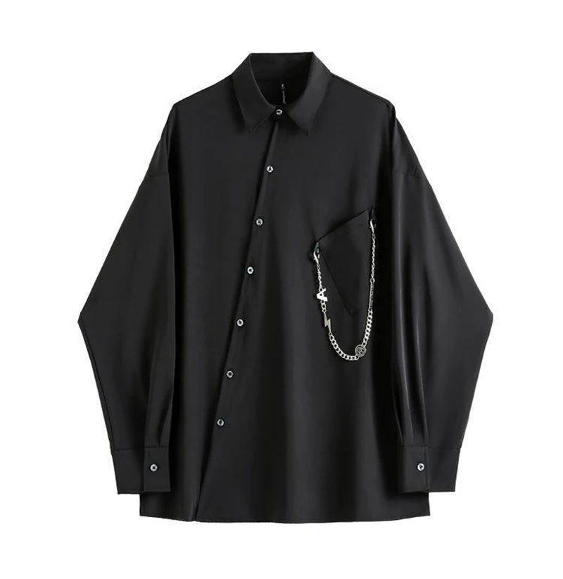 Весенне-осенняя бандажная рубашка с цепочкой, свободные брюки-карго...