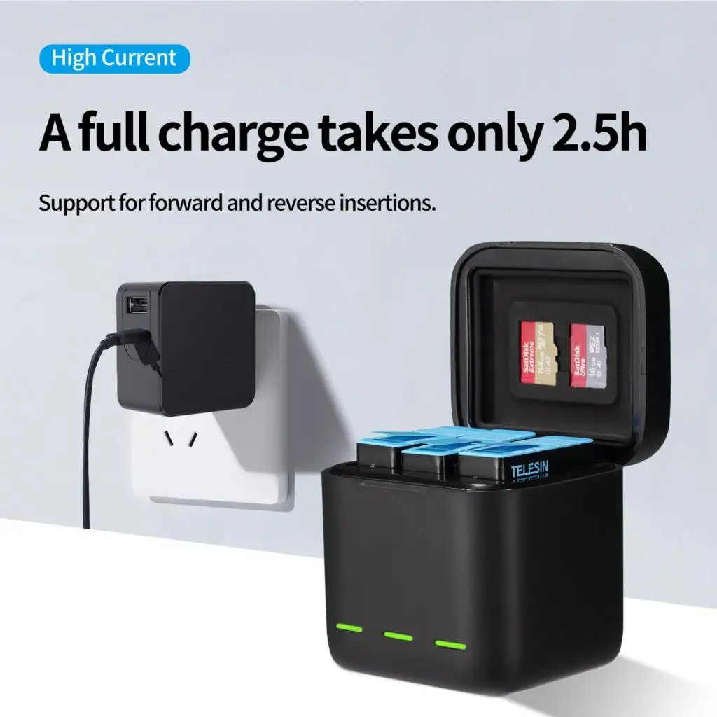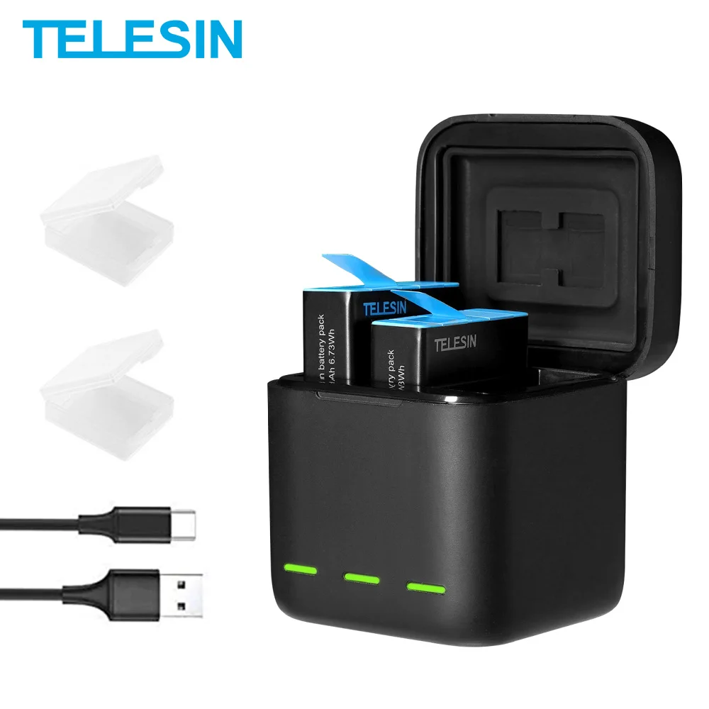 Зарядное устройство TELESIN для GoPro 9 10, 1750 мАч, 3 способа