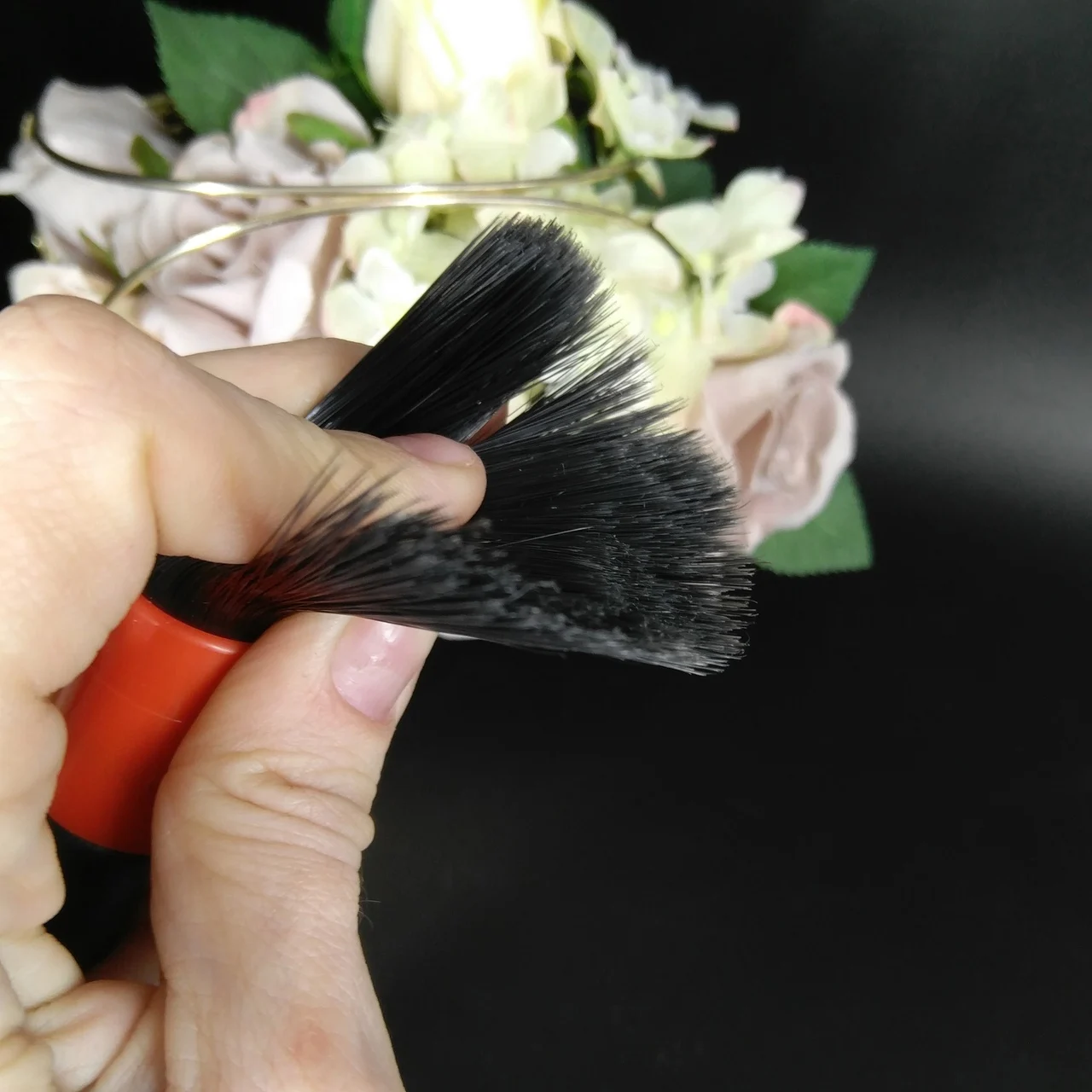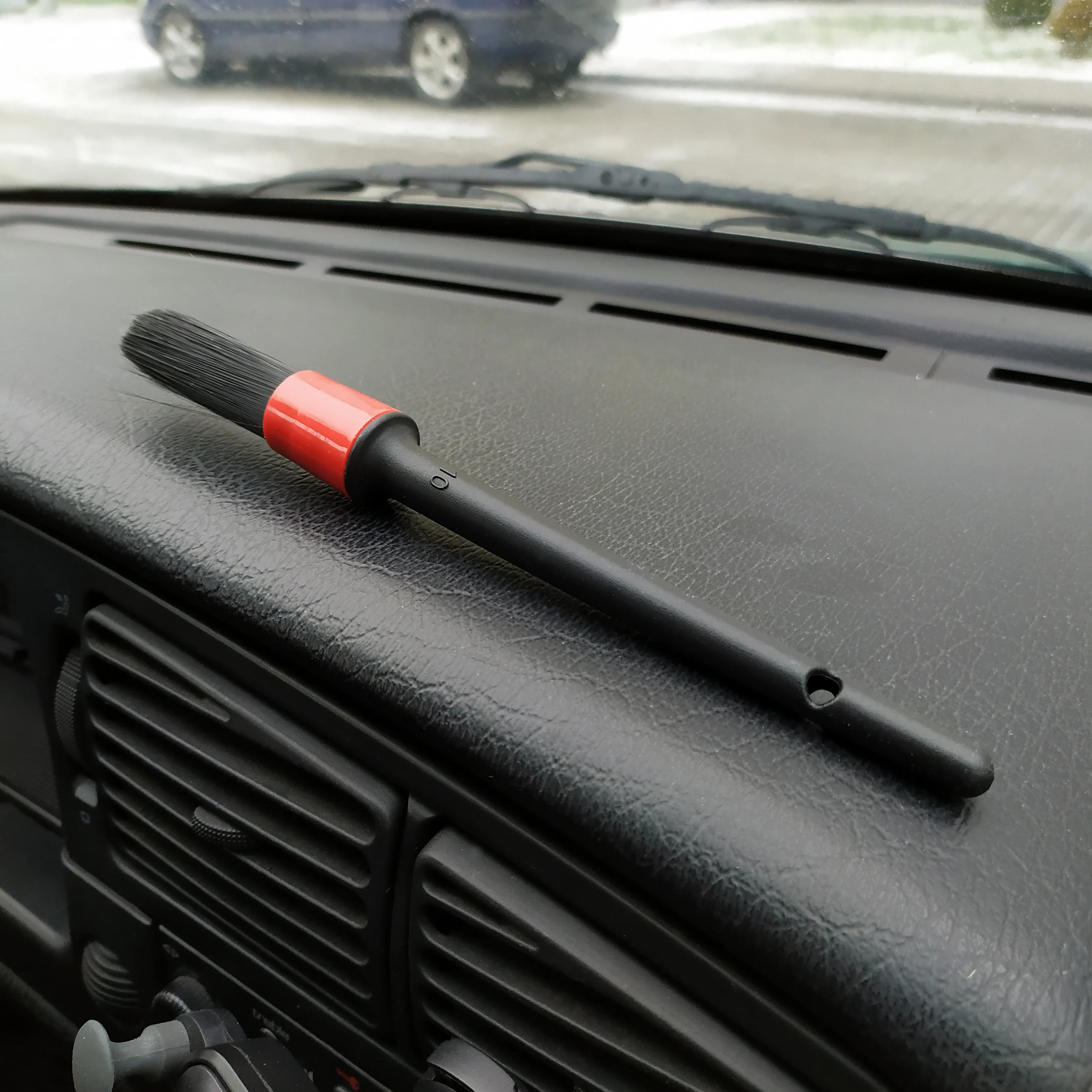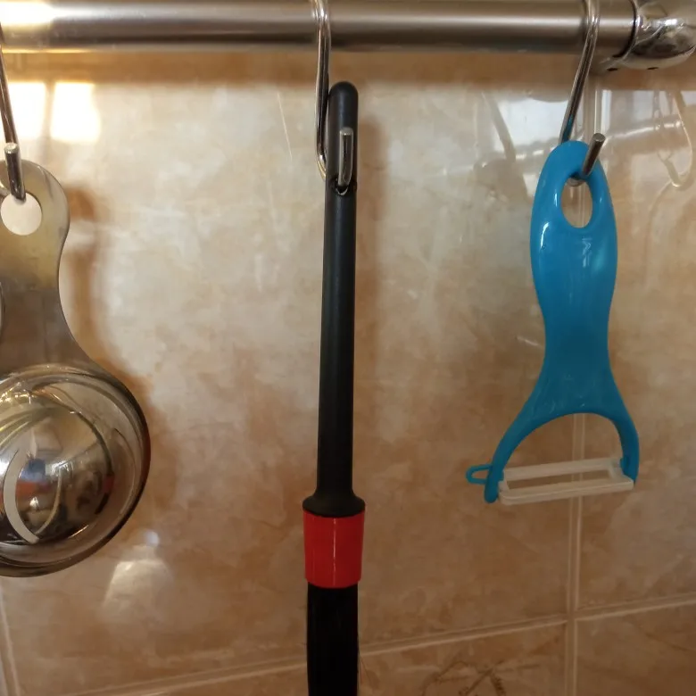 Удобная и качественная кисть! Можно использовать для ухода за техникой и другими бытовыми предметами. Материал: пластиковая ручка + синтетические волокна. Размер 21*1,5 см. Цвет: чёрный + красный. Ворс средней жёсткости, держится хорошо. Ручка имеет отверстие круглой формы для подвешивания. По этой ссылке на выбор 5 размеров.