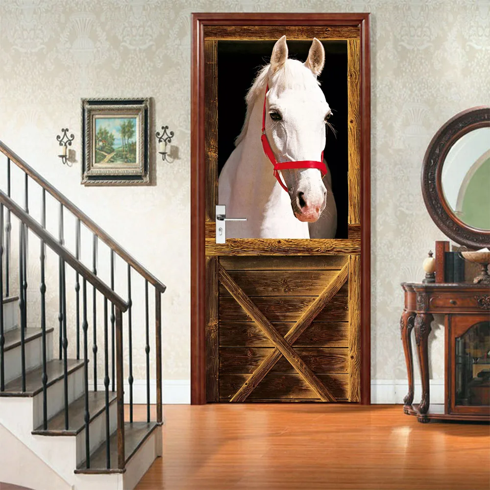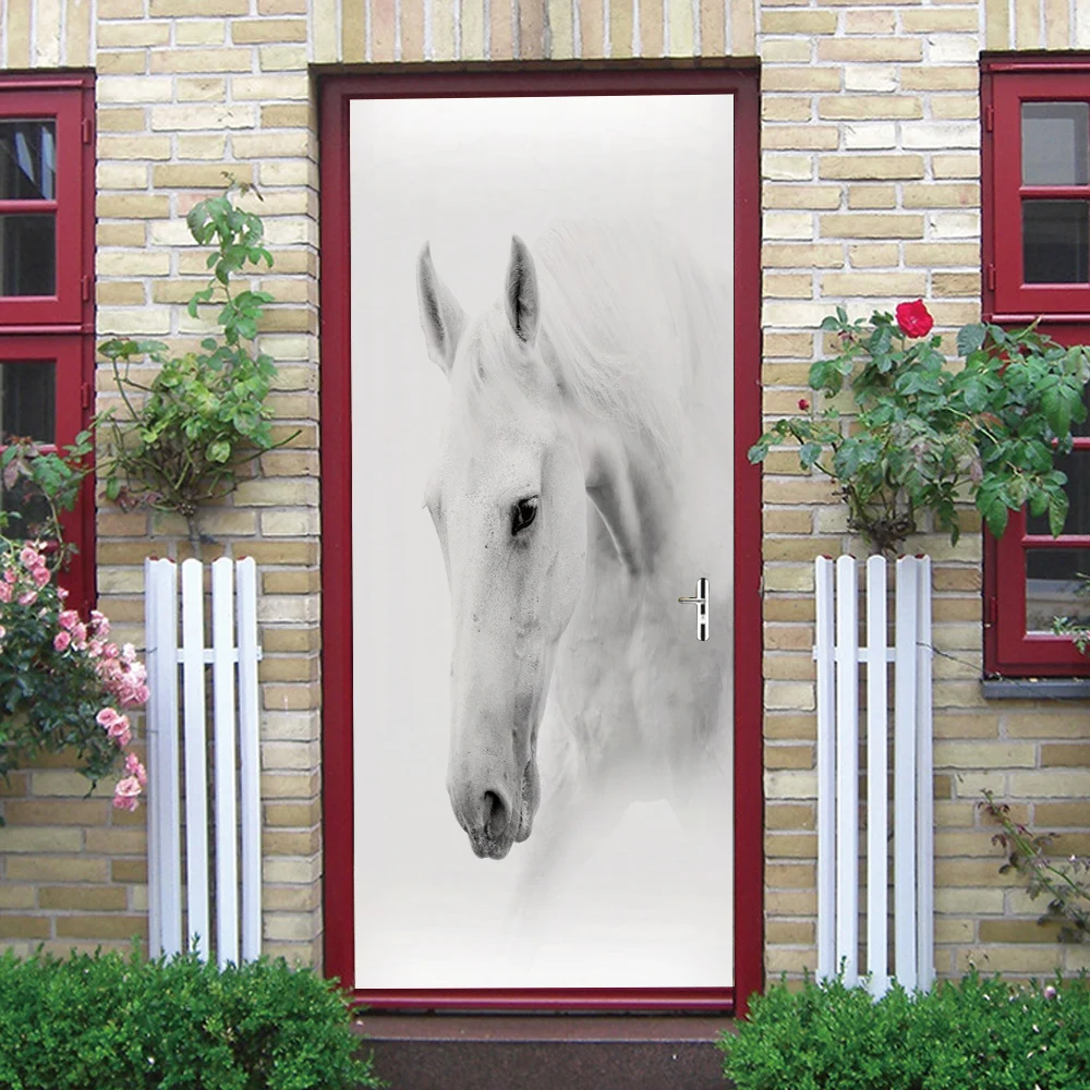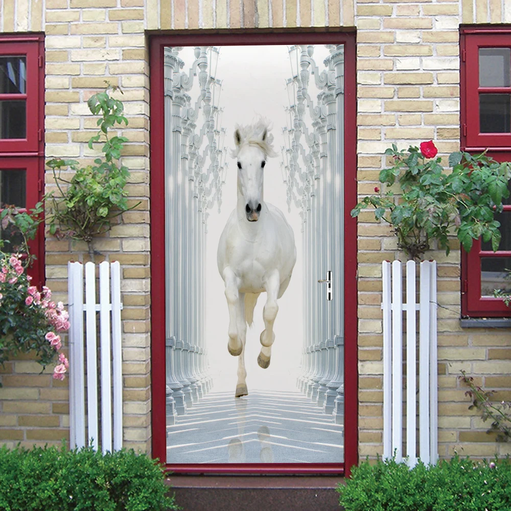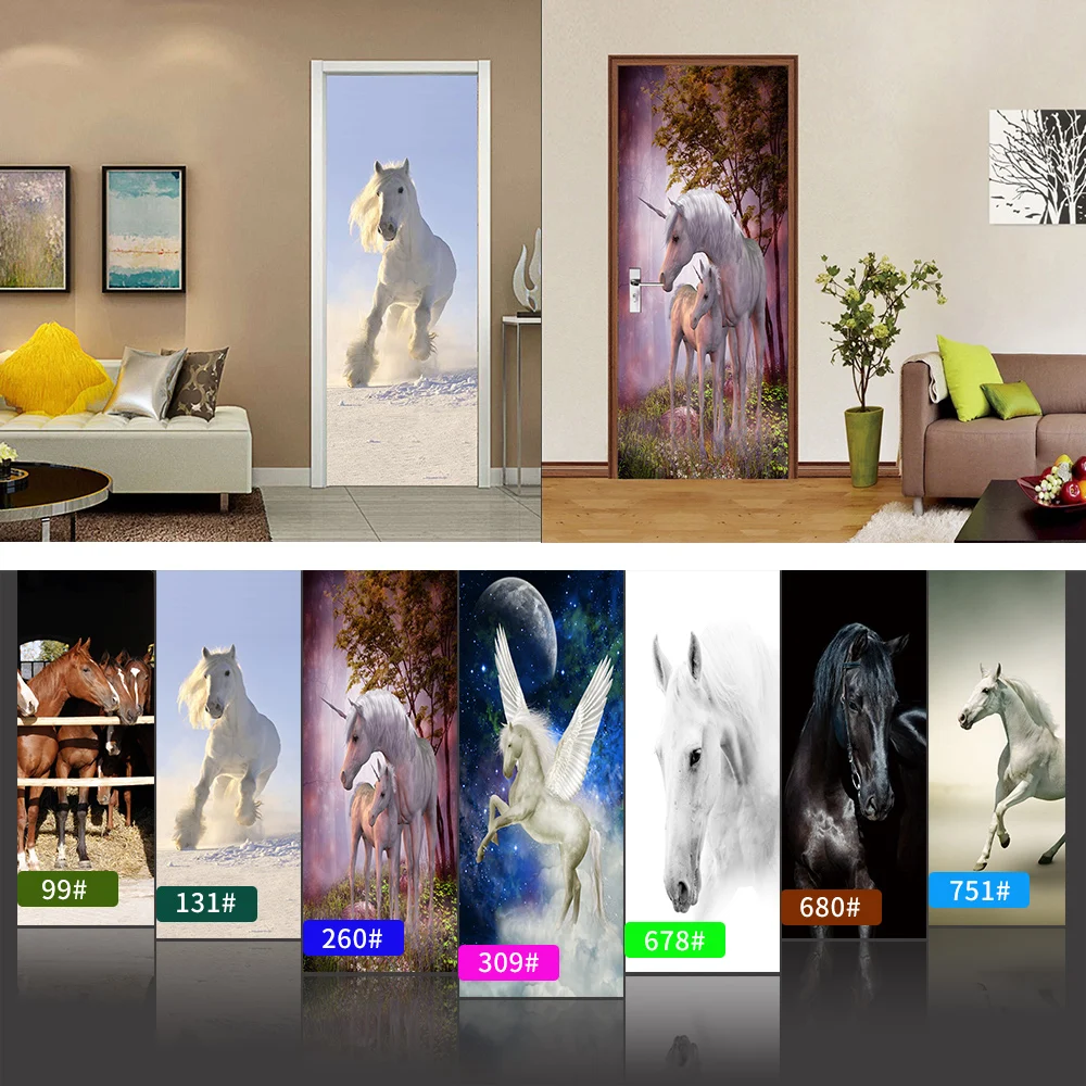 Настенная дверь с постером лошади, 3D наклейка, спальня, ванная комната, гостиная, самоклеящиеся дверные наклейки, ПВХ водонепроницаемые съемные обои