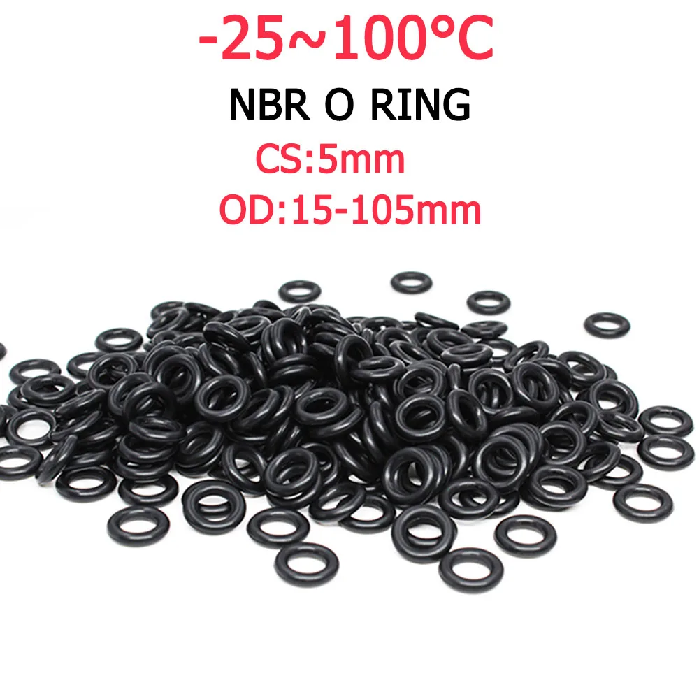 Черное уплотнительное кольцо NBR, уплотнительная прокладка CS 5 мм, NBR, автомобильная Нитриловая Резина, Круглый, о-образный, КОРРОЗИОННЫЙ, маслостойкий, уплотнительная шайба OD 15 мм-105 мм