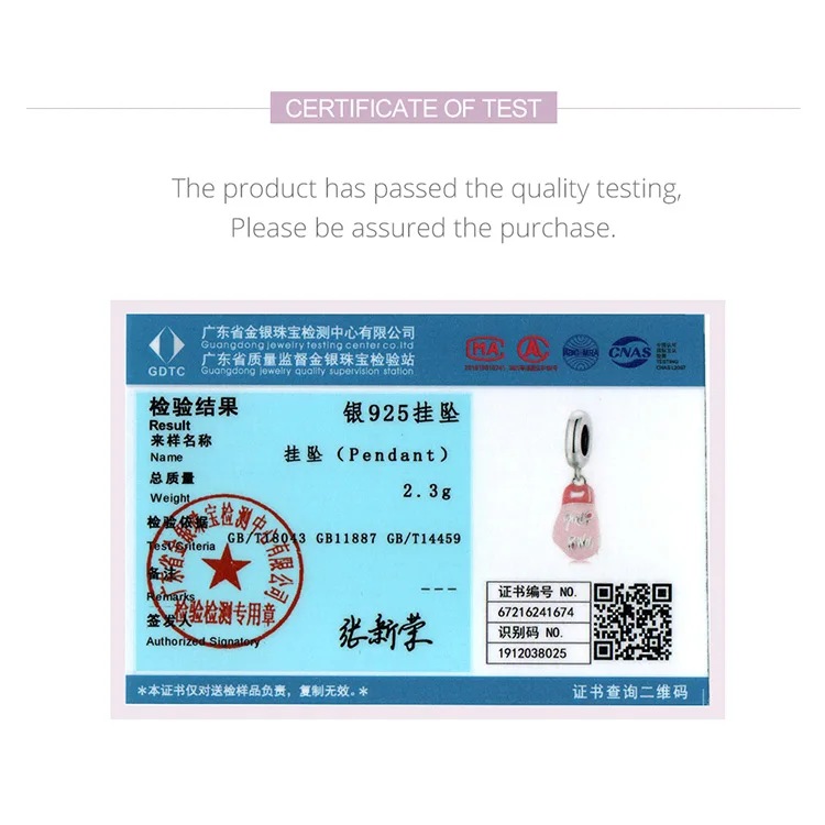 Номер СертификатаPink Glove Girl Power 925 Sterling Silver Bead Pendant