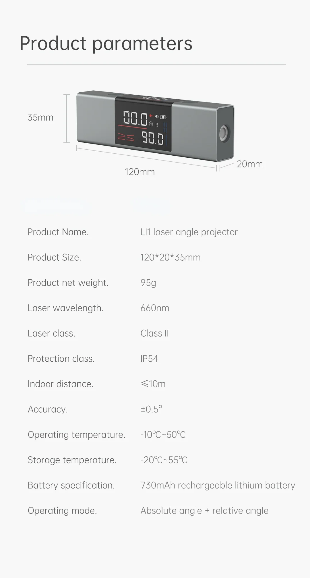 Лазерный угломер Duka LI1, цифровой, с зарядкой