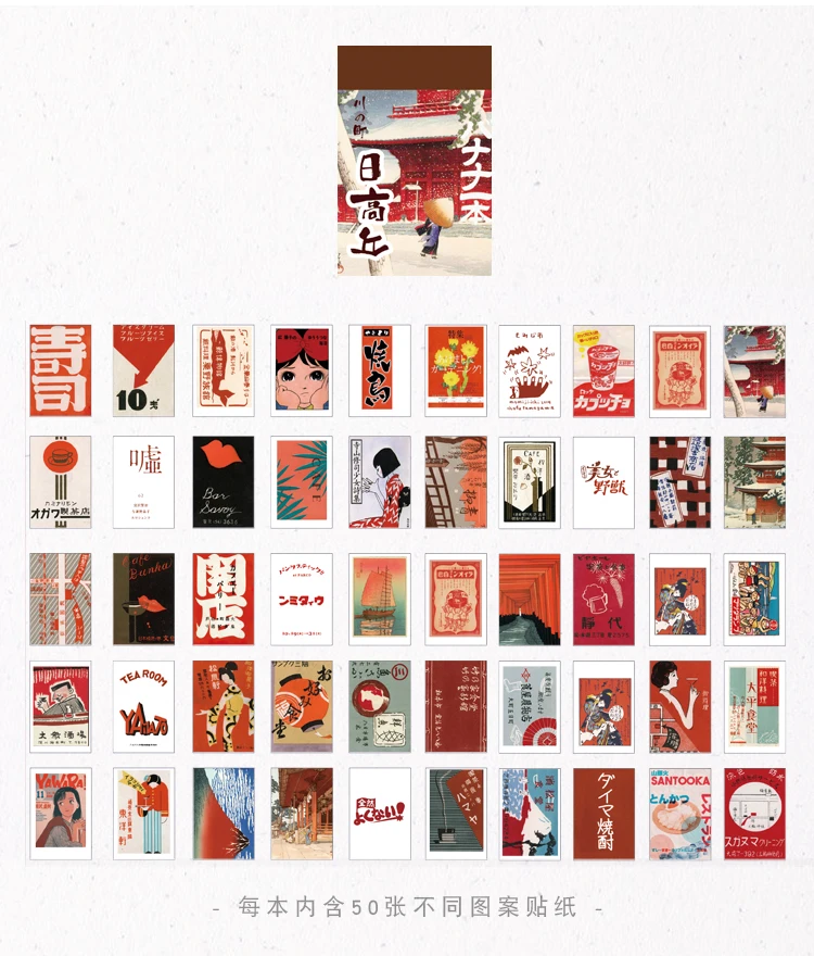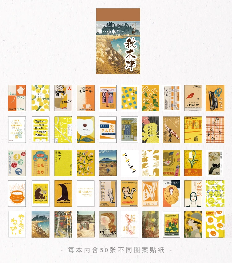 Винтажные Стикеры-клейкие, 50 шт., в японском стиле, канцелярские н...
