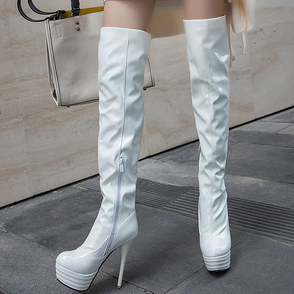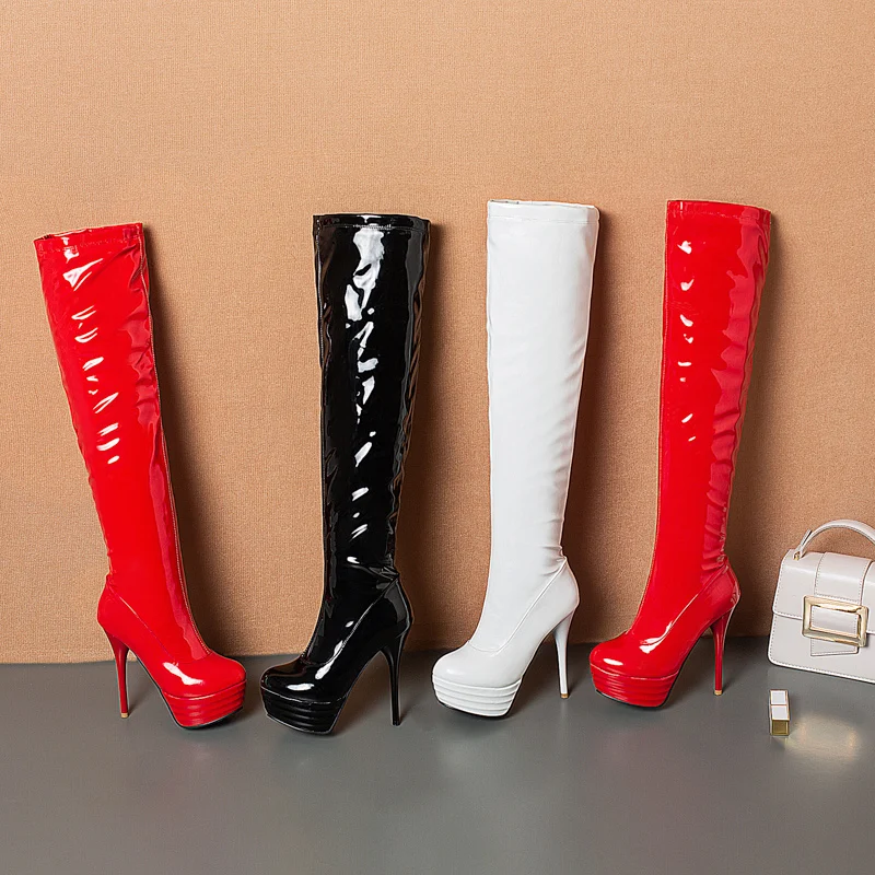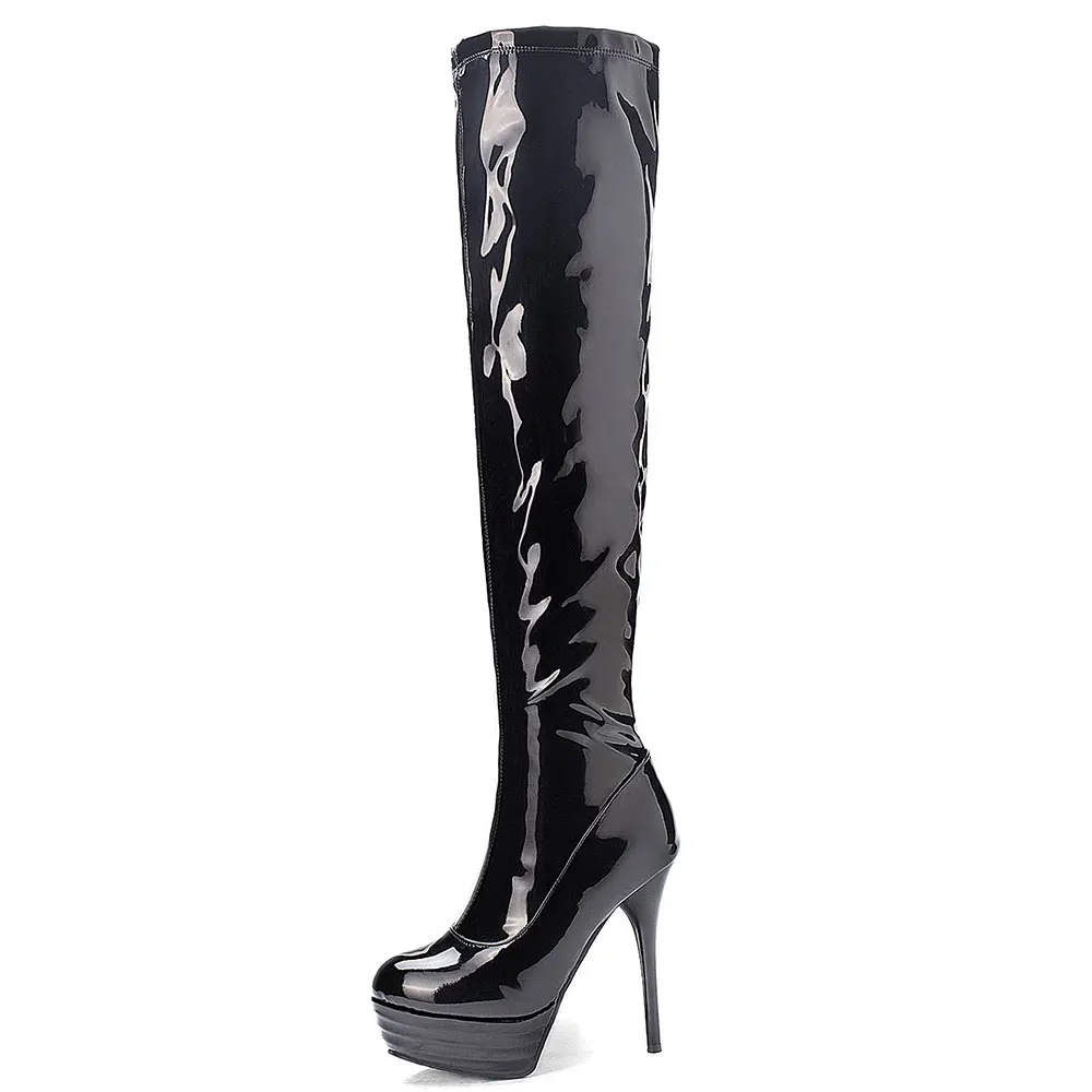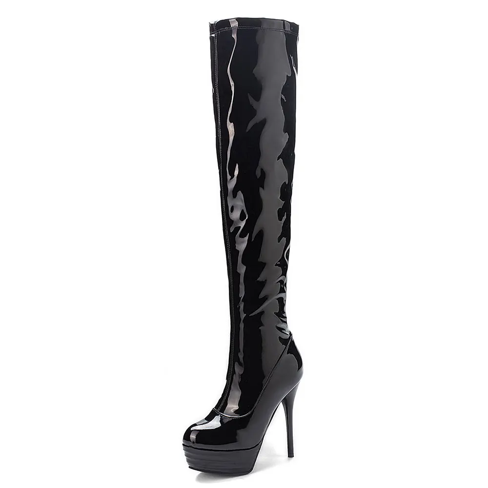Sgesvier/женские высокие сапоги до бедра; Пикантные ботфорты из лакированной искусственной кожи на платформе и высоком каблуке; Женские сапоги для танцев на шесте; G685