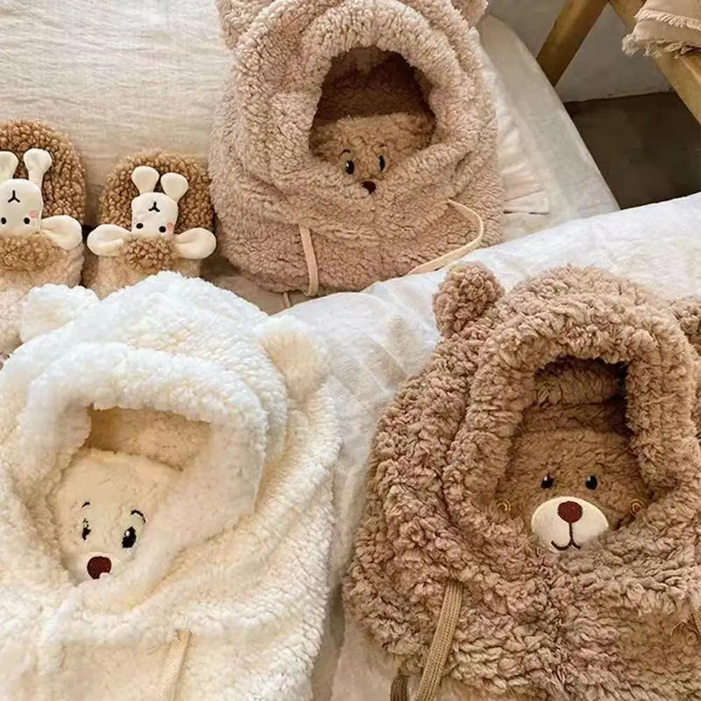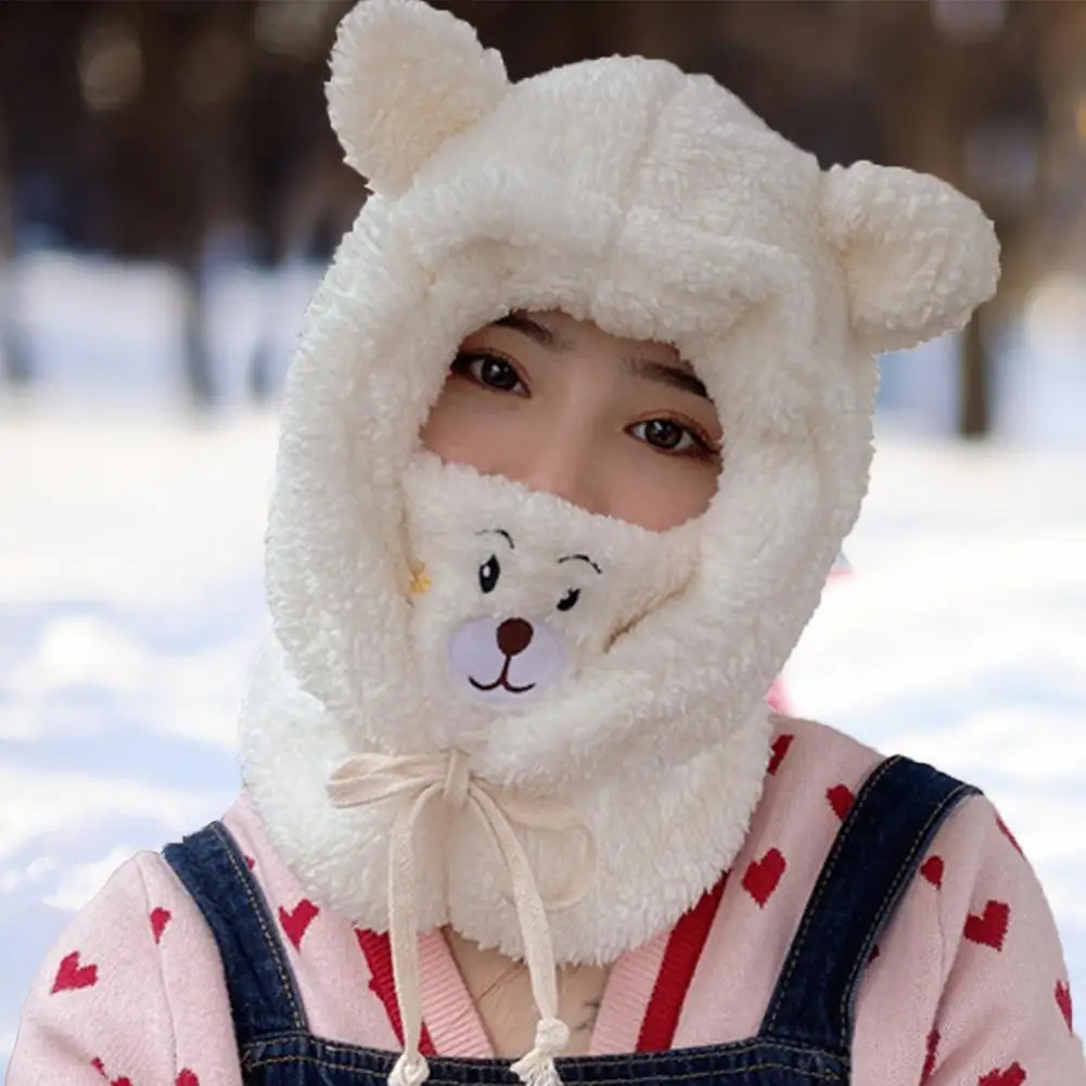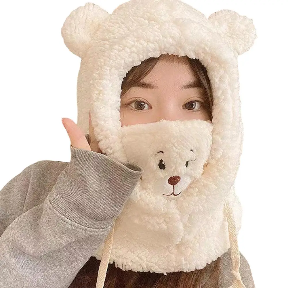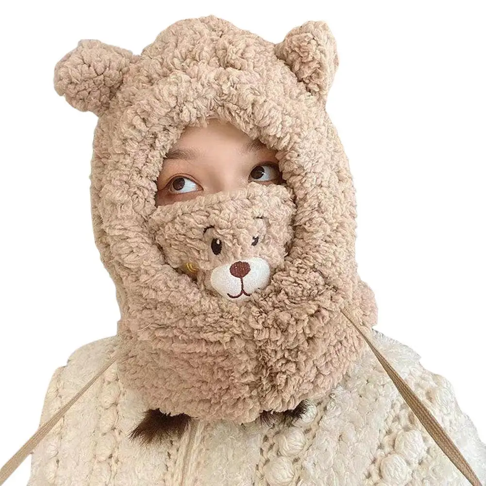 Мягкая теплая зимняя шапка с капюшоном и круглым вырезом, милый шарф с медвежонком для женщин, 3 в 1, шапка с ушками, Балаклава с капюшоном