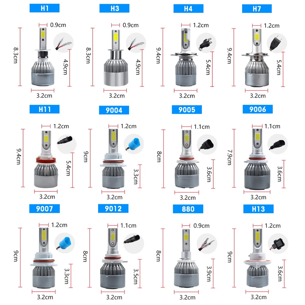 1 пара, Автомобильные светодиодные лампы H1 H8 H9 H11 9005 9012 9-36 в 6000 лм к 36 Вт