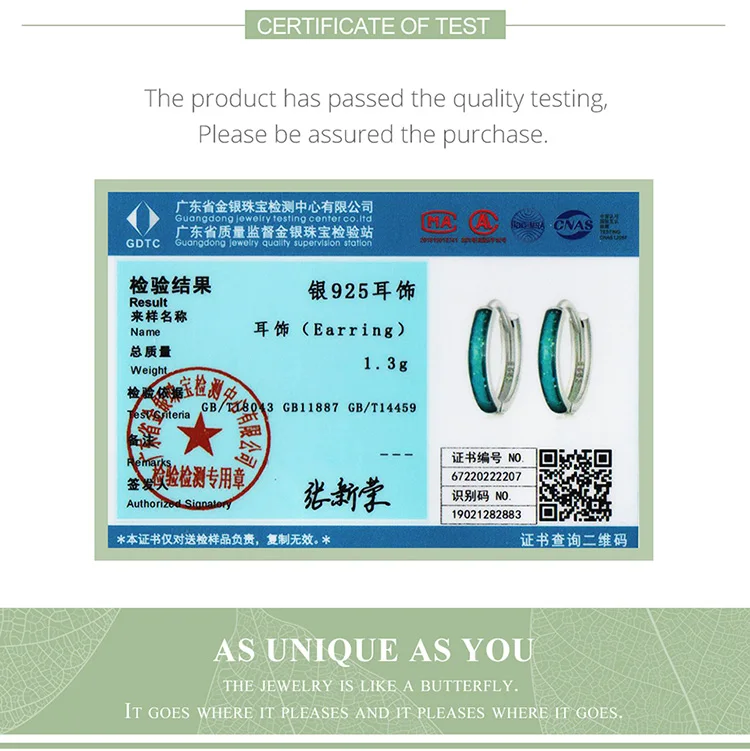 Номер СертификатаWOSTU 925 Sterling Silver European Simple Blue Hoop Earrings
