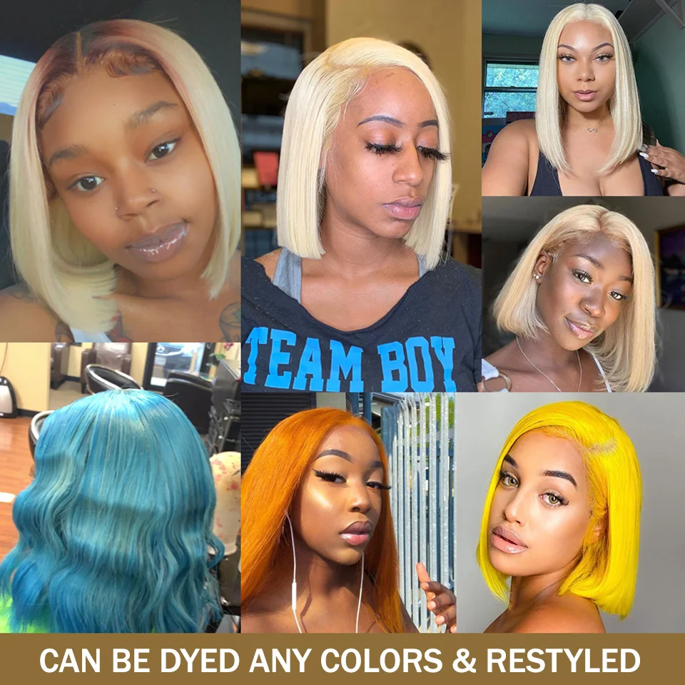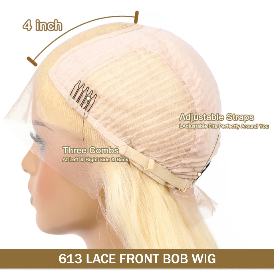 Бразильские короткие парики 613 блонд Боб 13x 4, парики на сетке спереди, предварительно выщипанные прямые парики на сетке спереди для женщин, парик с T-образной пряжкой, волосы без повреждений
