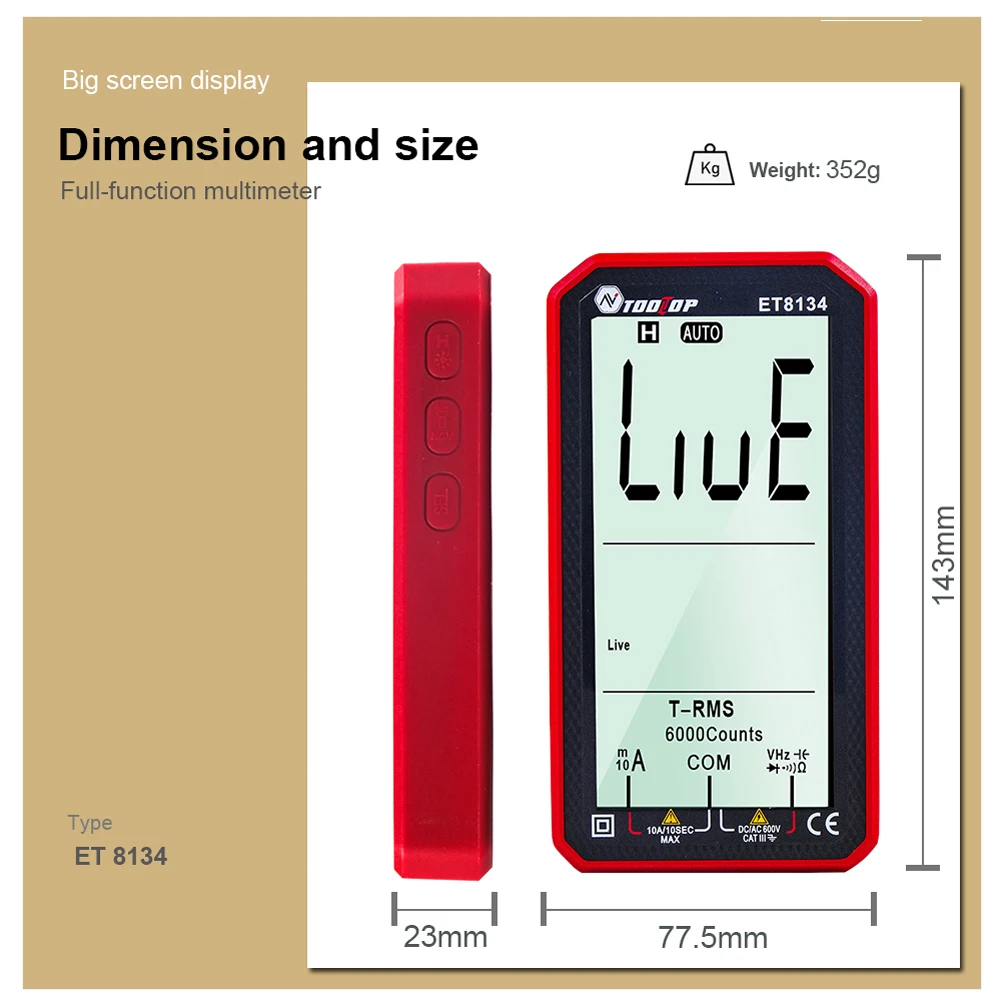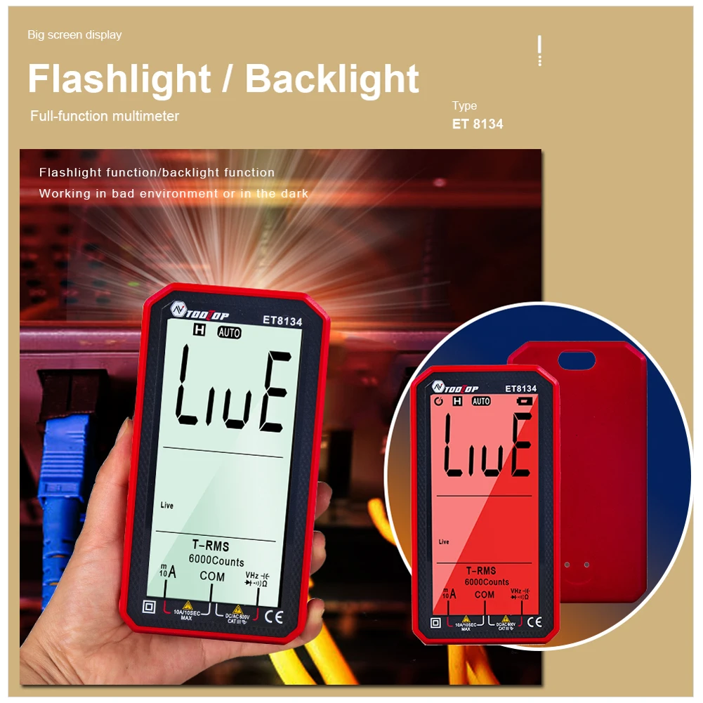 Цифровой мультиметр TOOLTOP ET8134, Измеритель постоянногопеременного тока, напряжения, емкости, сопротивления, Бесконтактный индикатор напряжения, вольтметр