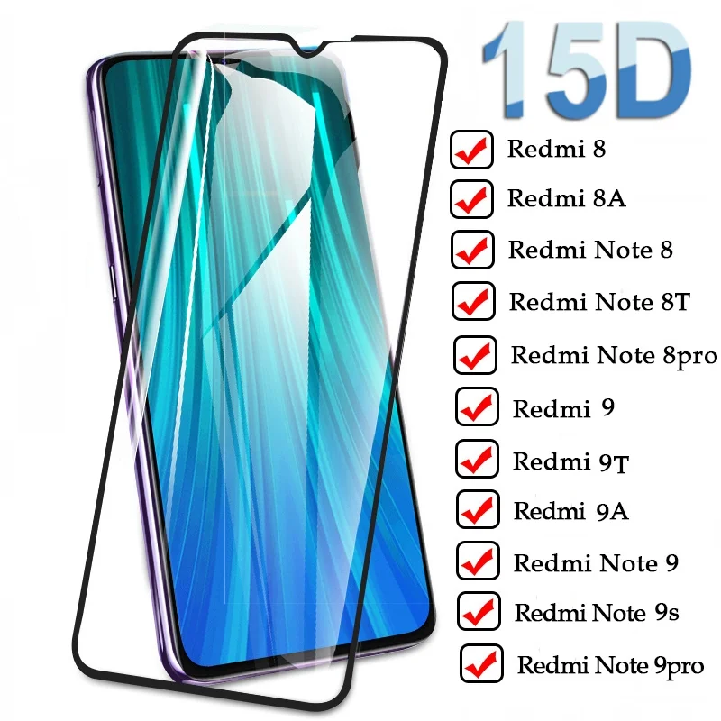 Закаленное стекло 15D для Xiaomi Redmi Note 9 Pro Max 8 T 8A 9A 9C 9T, защитная пленка для экрана Redmi Note 9 S, A 8 T, 9 S, защитное стекло