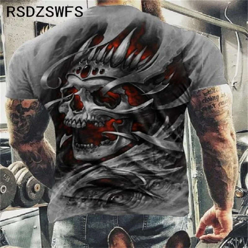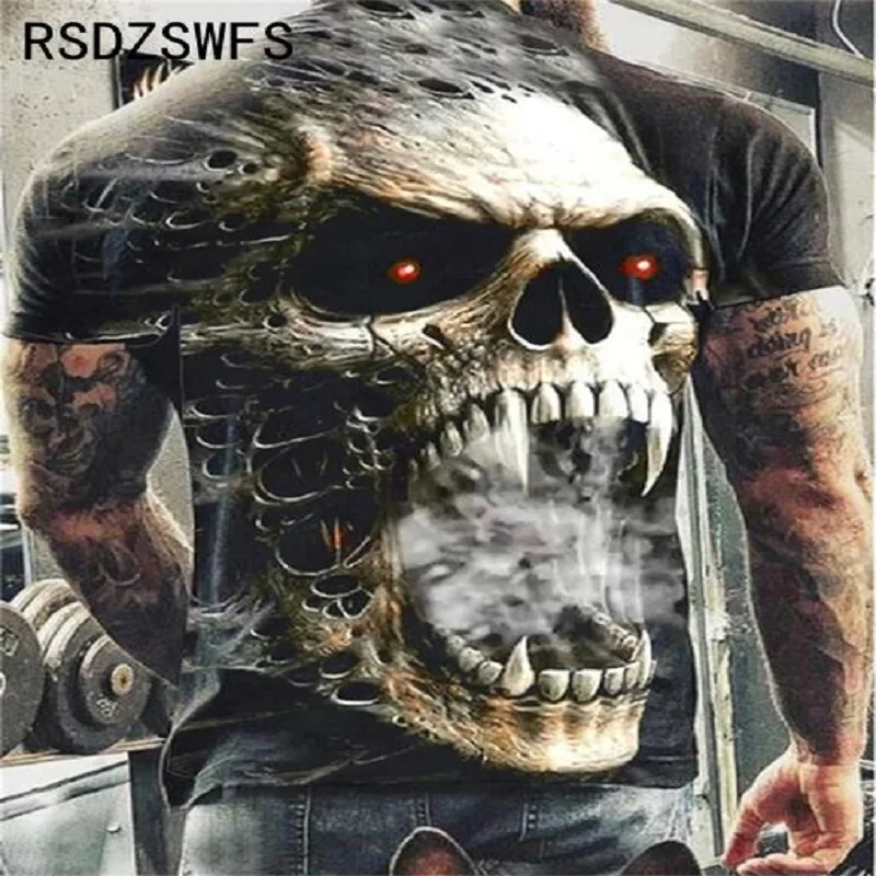 Футболка мужская оверсайз с коротким рукавом, Повседневная рубашка с принтом черепа, уличная одежда, топ в стиле хип-хоп с 3D принтом, лето 2021
