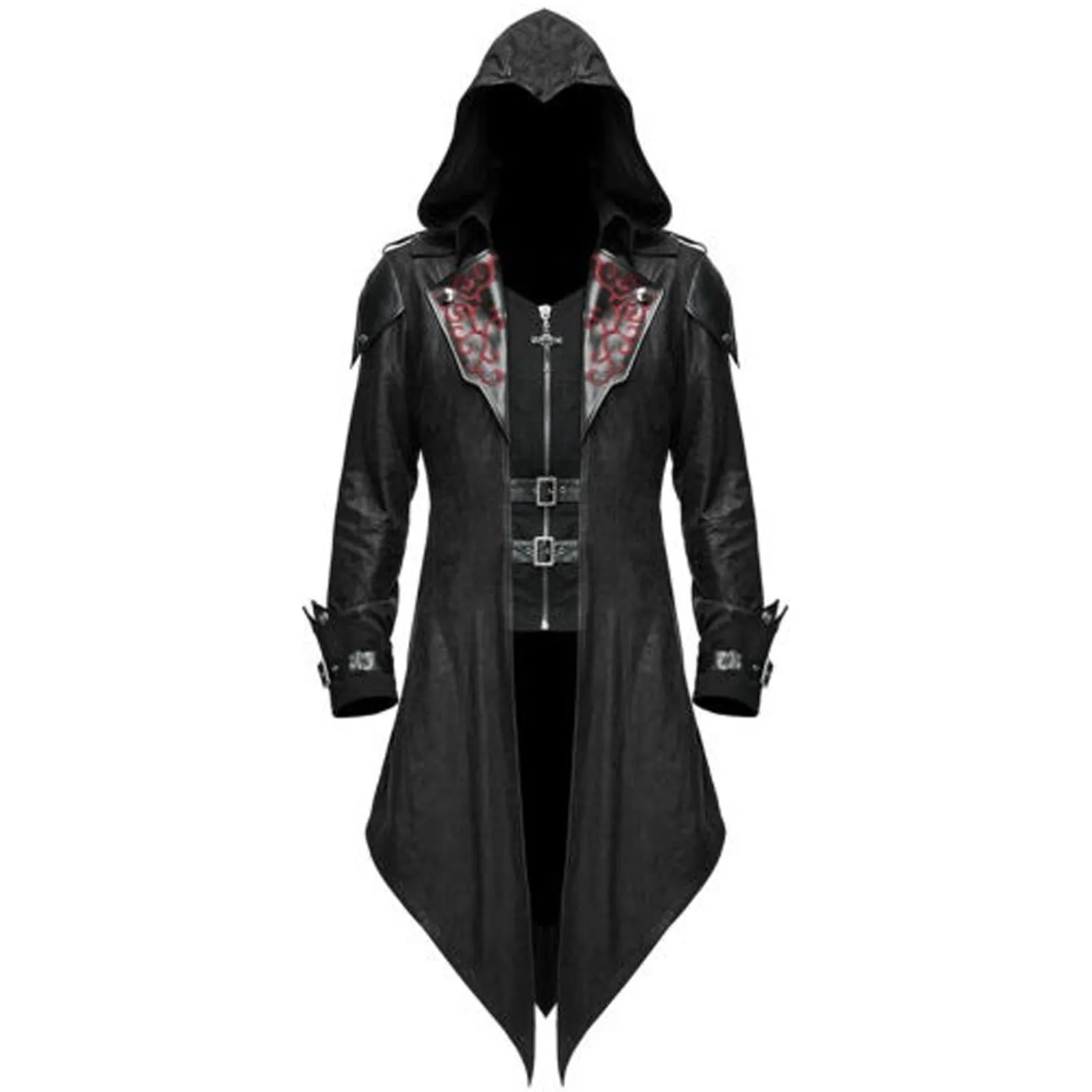 Мужской стиль, средневековый костюм, Готический стимпанк, черный ретро, с длинным рукавом, толстовка, форменная партия, зимнее пальто, верхняя одежда