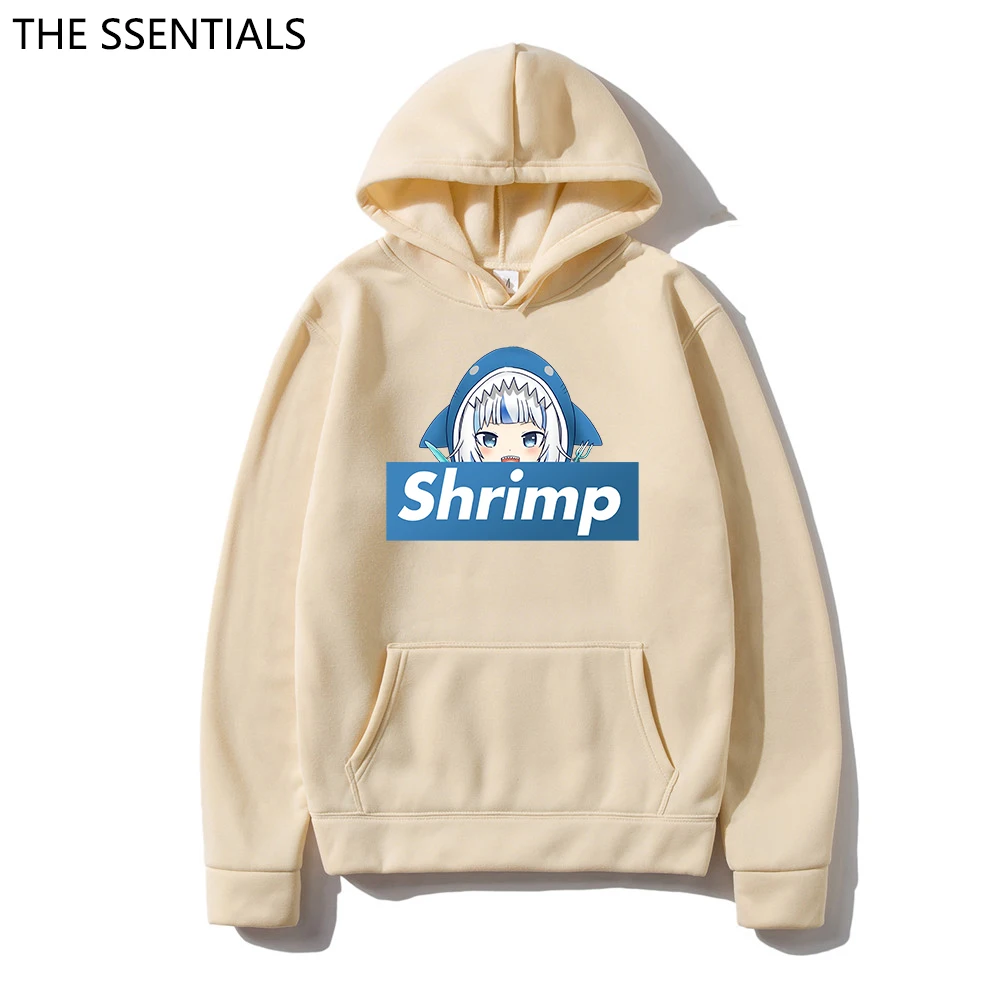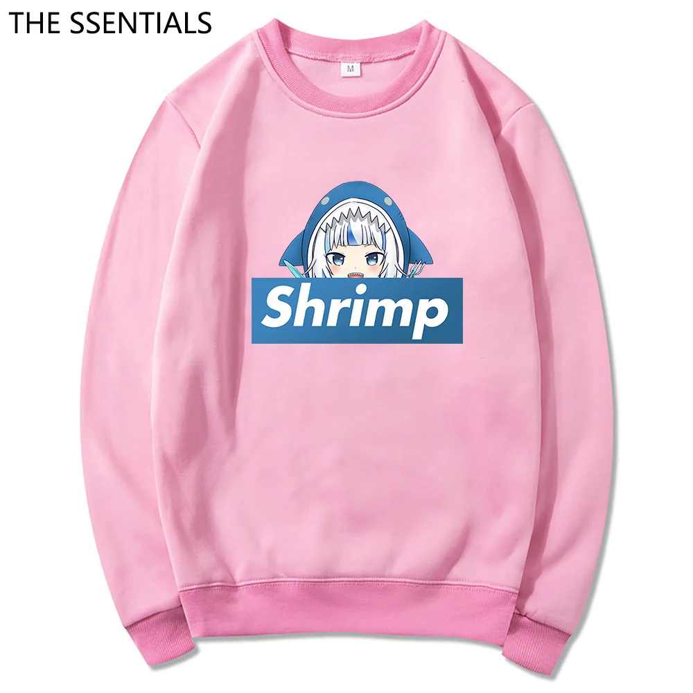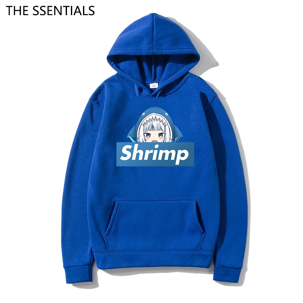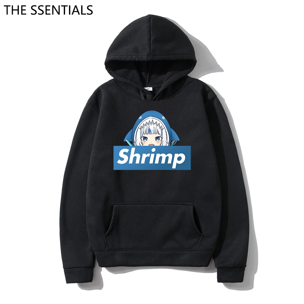 Толстовка мужская с капюшоном и принтом головы, кофта с рисунком в стиле Харадзюку, пуловер с креветками и надписью VTuber Gawr Gura на английском языке