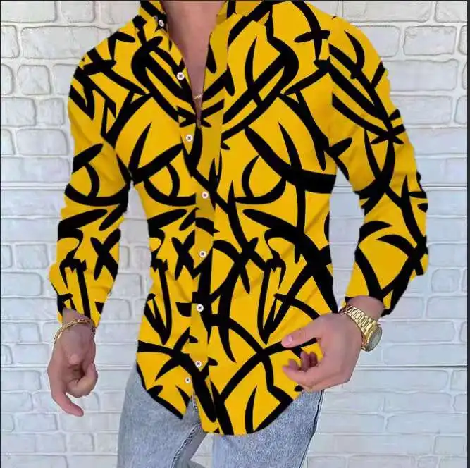 Лидер продаж 2021, мужская повседневная модная рубашка в европейском и американском стиле с принтом, однобортный Кардиган, рубашка с длинными рукавами для мужчин