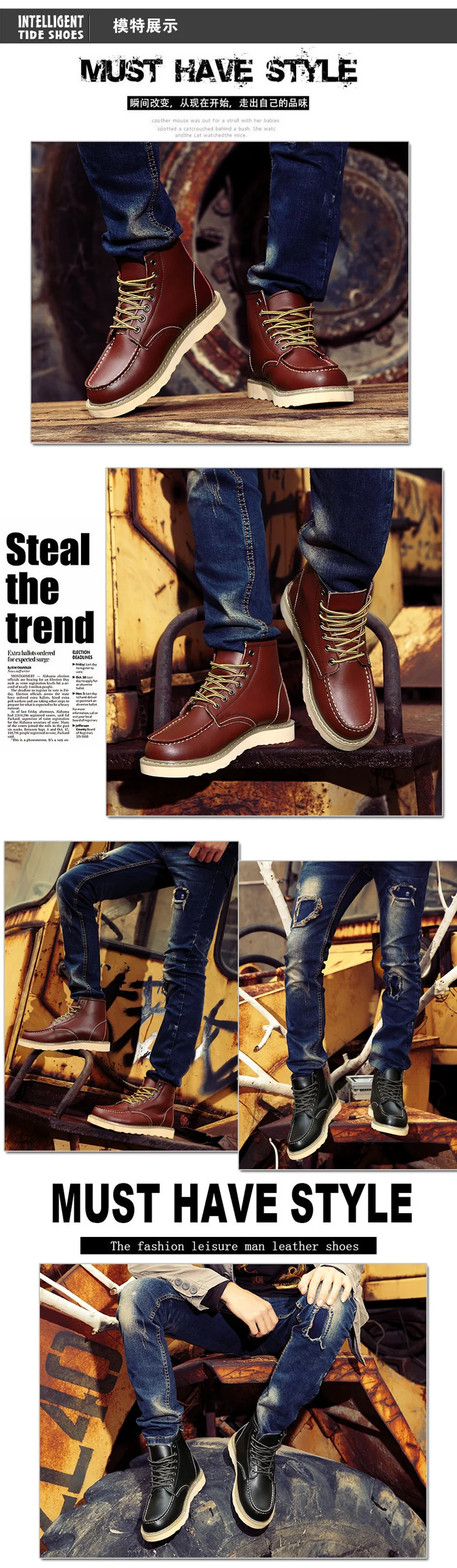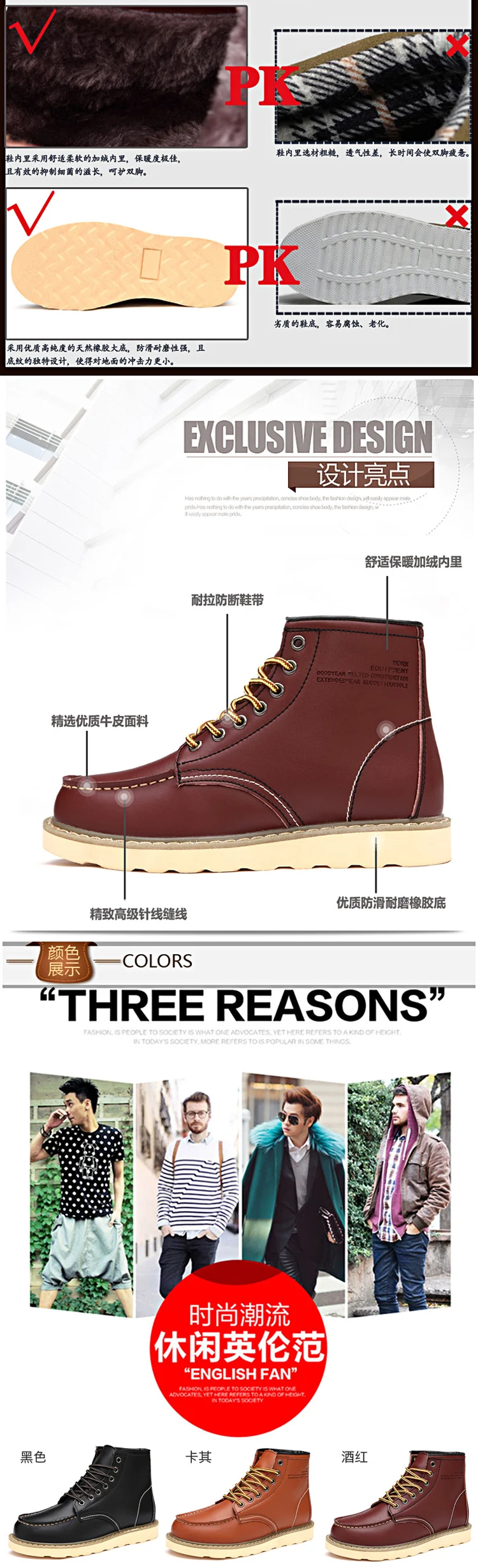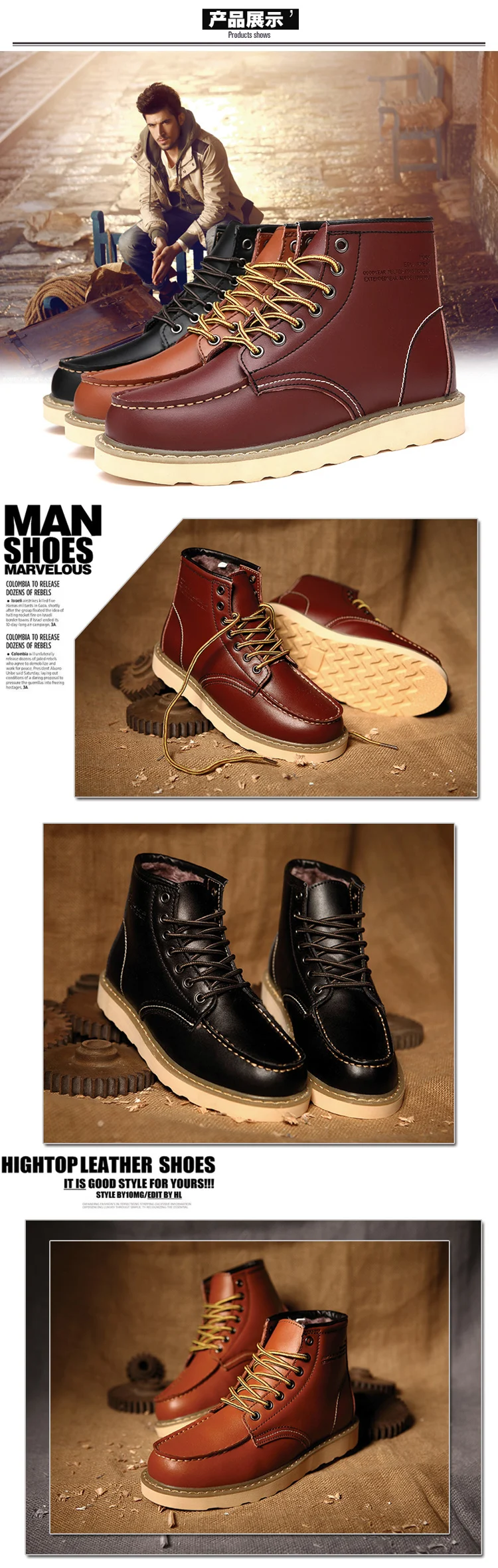 Мужские кожаные высокие ботинки из хлопка, Классические ботинки мар...