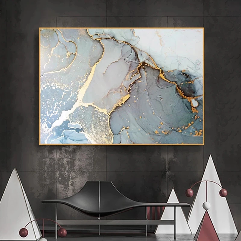 Современная абстракция синяя акварельная картина на холсте Золотая фольга мраморный узор скандинавский настенный художественный плакат печать Картина декор для гостиной