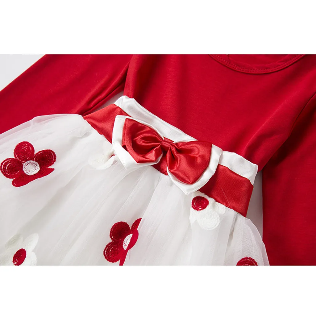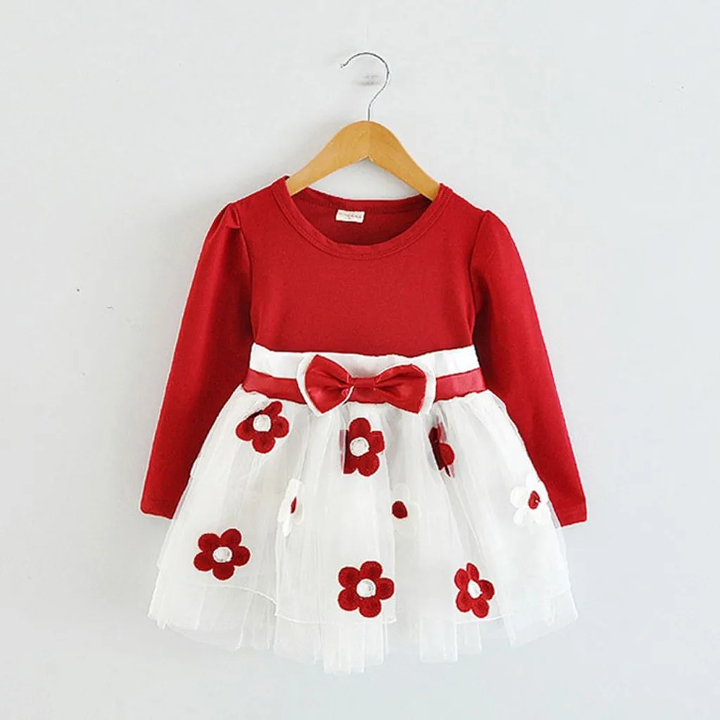 Платья для маленьких девочек с длинными рукавами из фатина с цветочным принтом и бантом