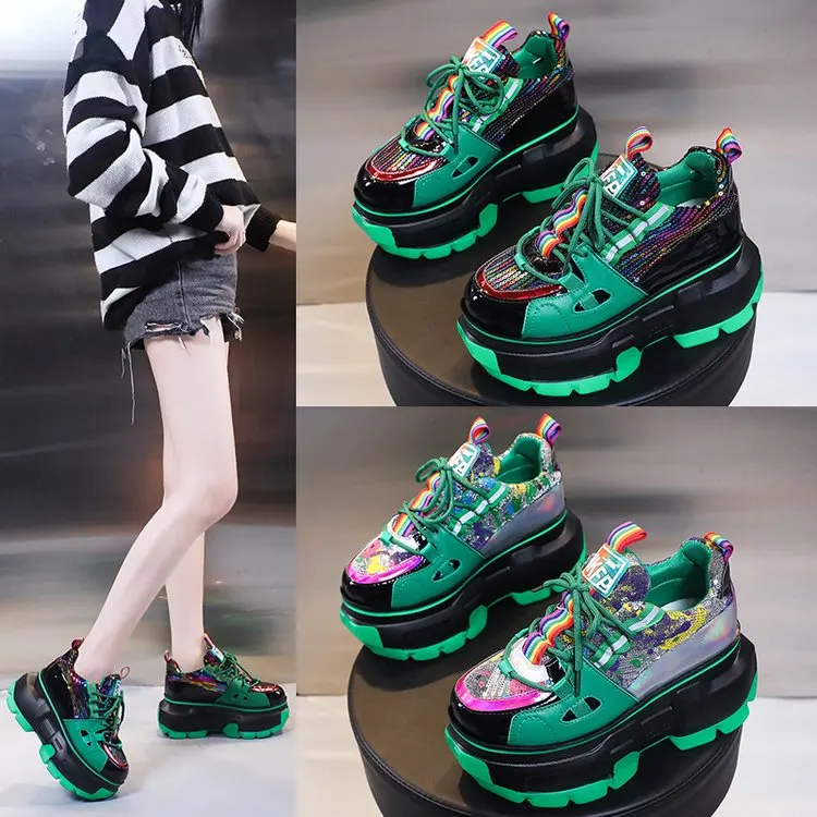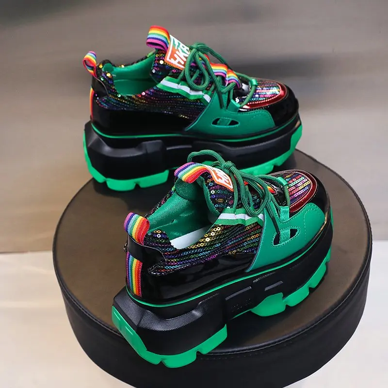 Кроссовки женские на высокой платформе, повседневная обувь на толстой подошве, с блестками, весенние люксовые, Осенние
