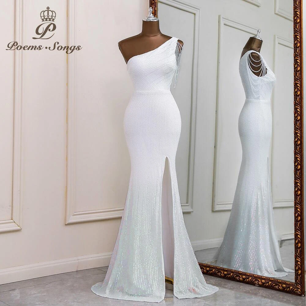 Женское вечернее платье на одно плечо, черное или белое платье для выпускного вечера