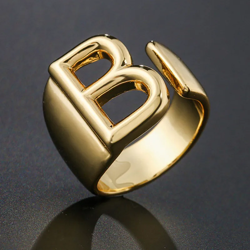 Открытое кольцо с инициалами имени и буквы A-Z, регулируемое металл...
