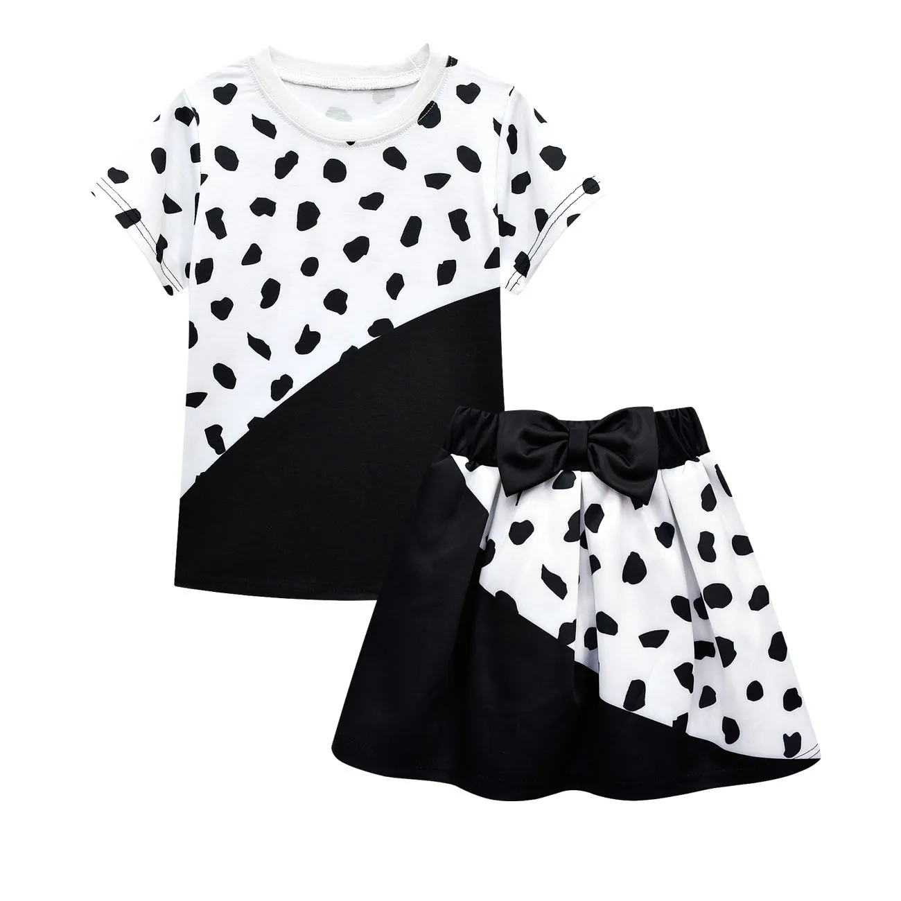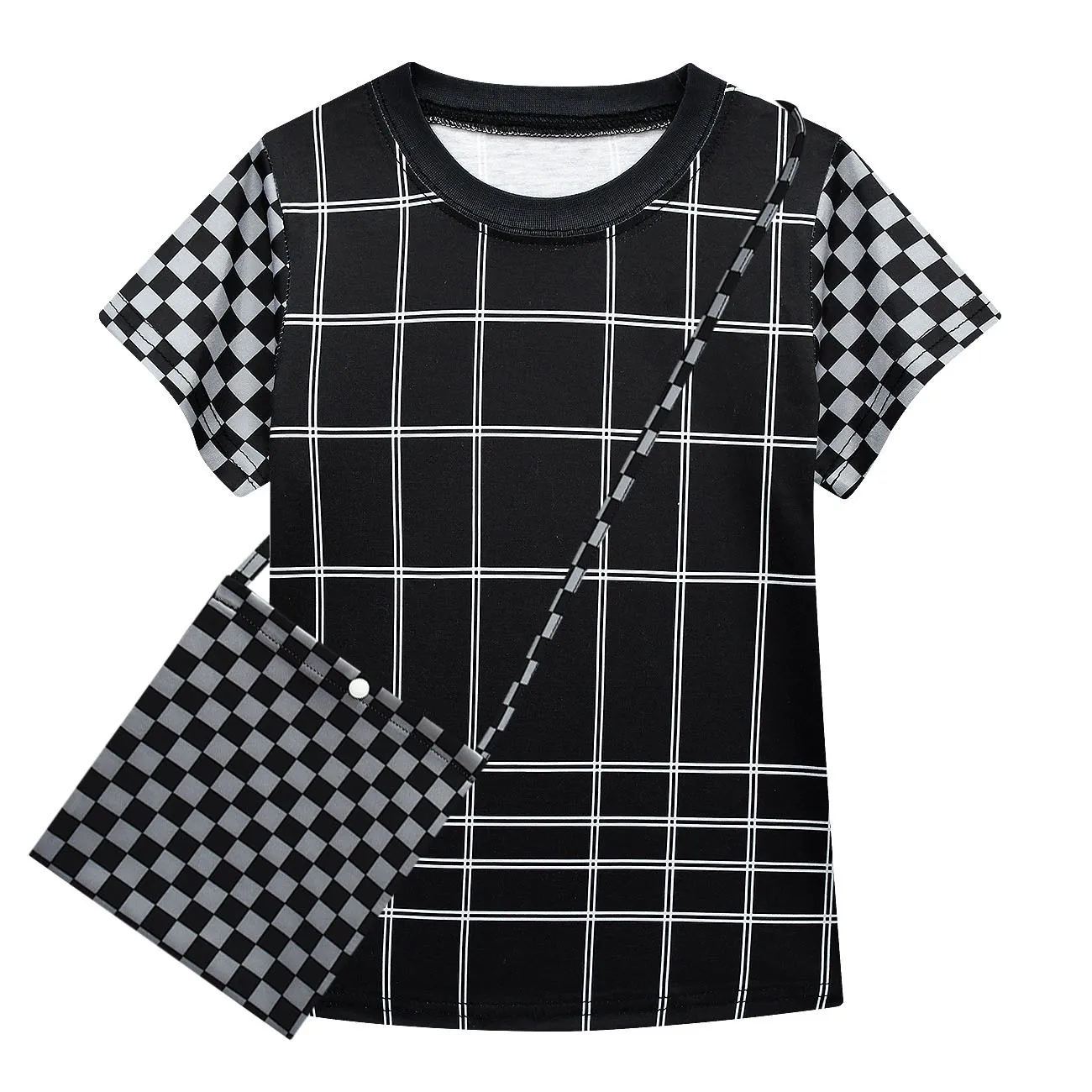 Комплект летней одежды из 3 предметов для девочек, топ с коротким рукавом + юбка + сумка