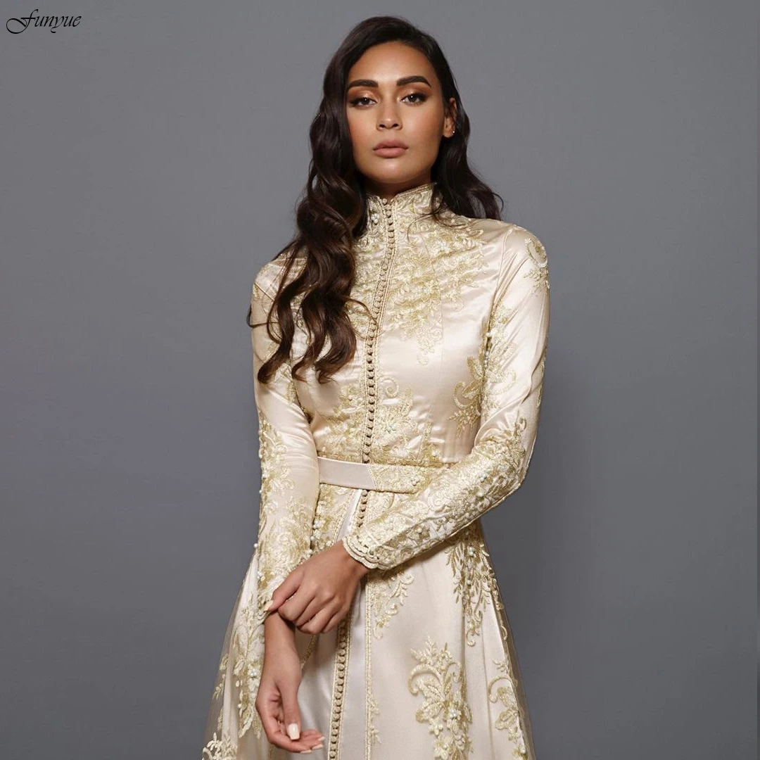 Цвета шампанского, марокканские кафтан, вечерние платья 2022, а-силуэт, с длинным рукавом, кружевные платья для особых случаев, Дубай, официальное платье для выпускного вечера, женское