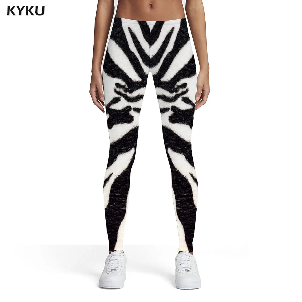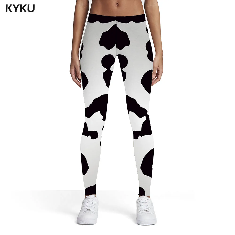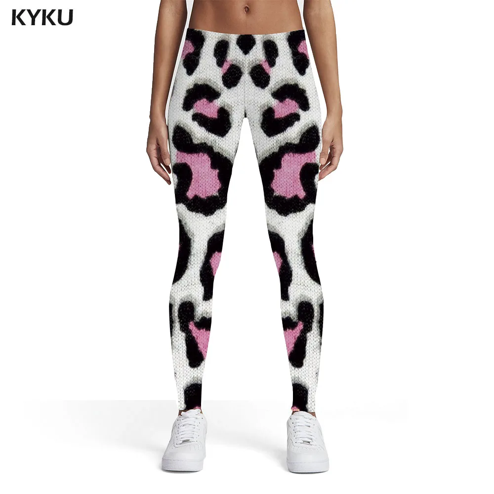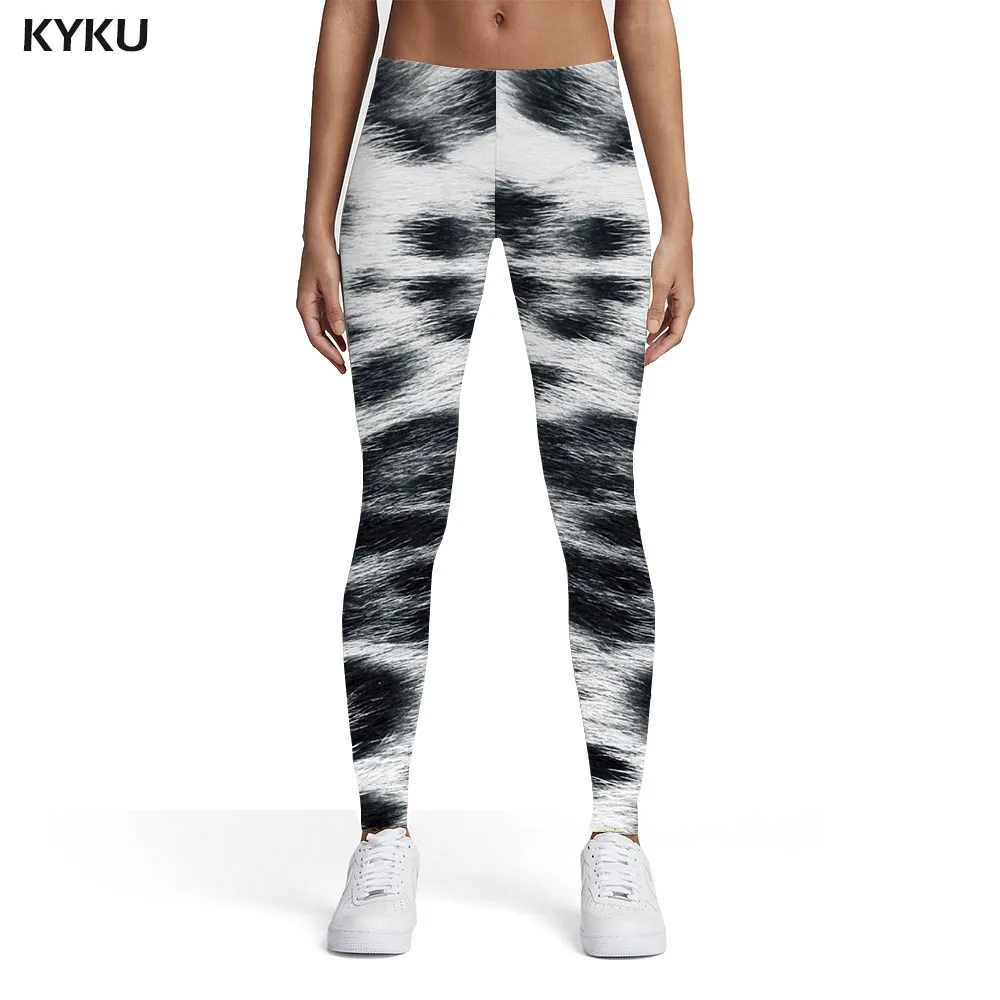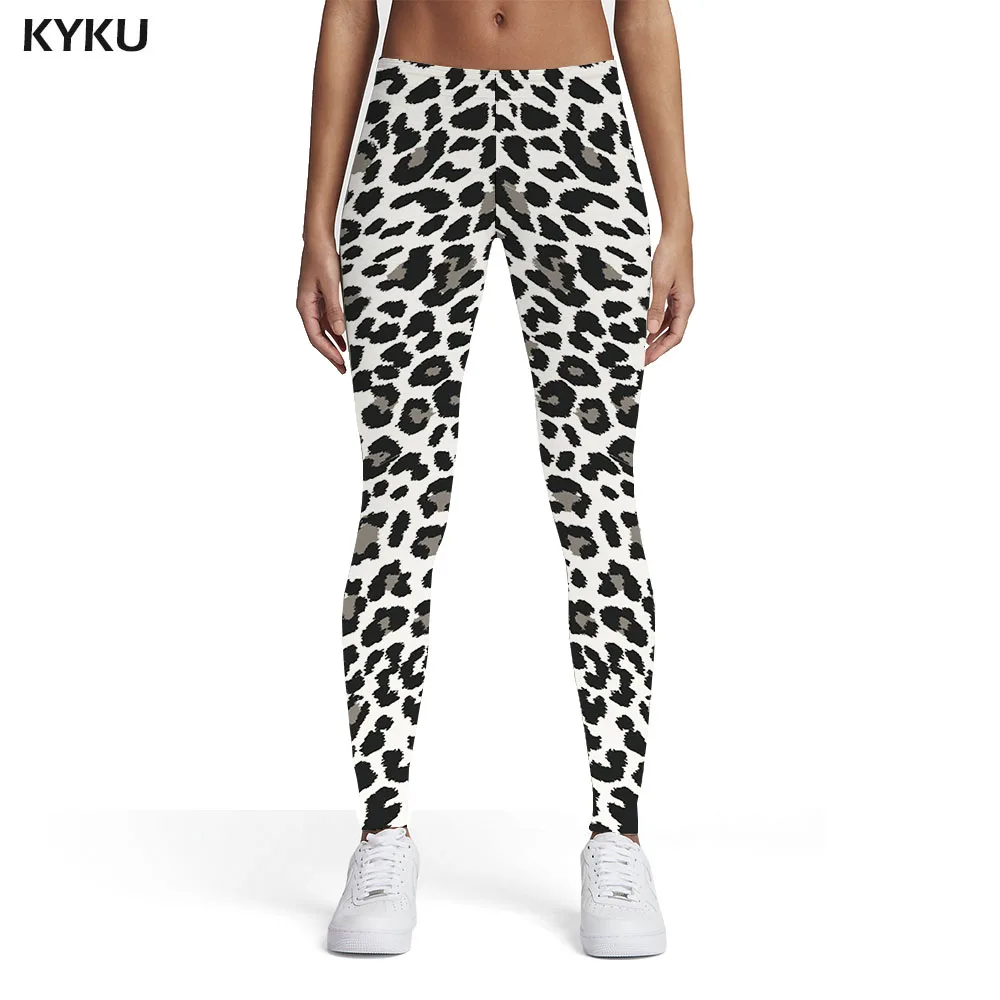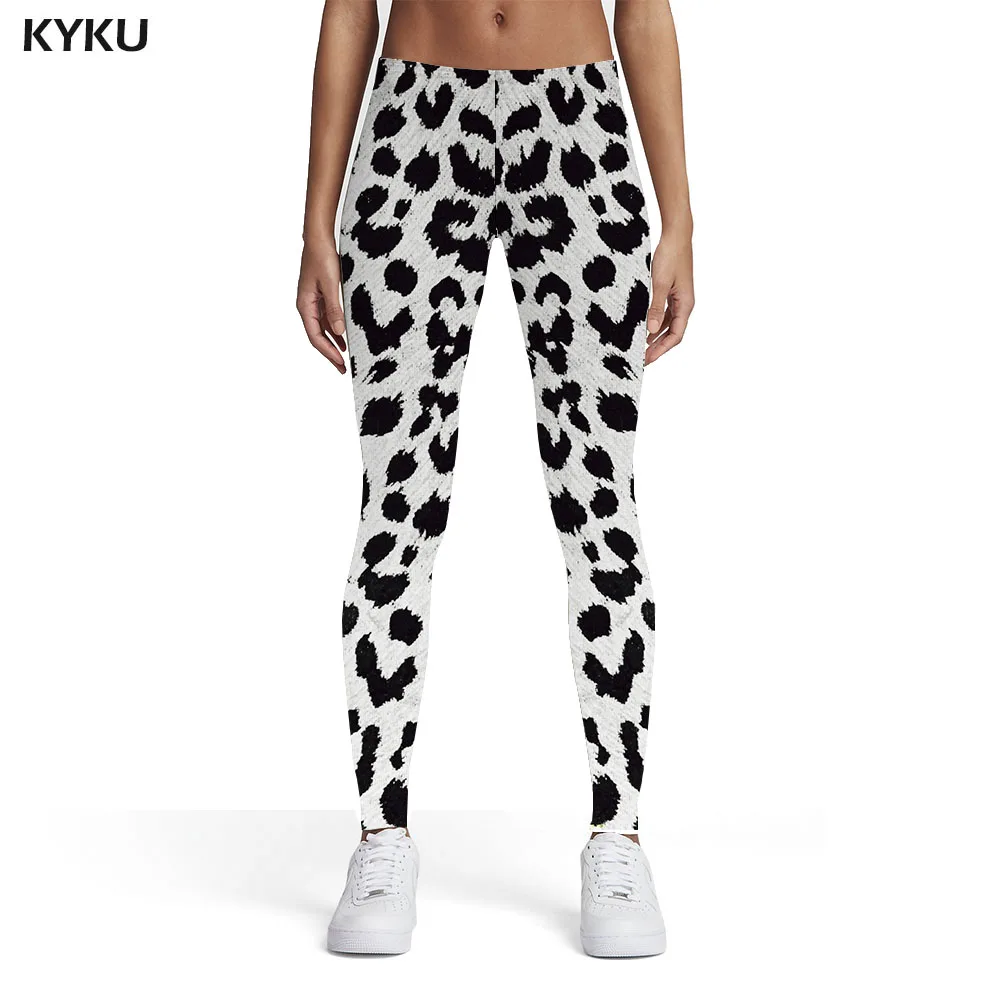 Женские леопардовые леггинсы KYKU, эластичные черно-белые уличные штаны с леопардовым принтом, лето 2019