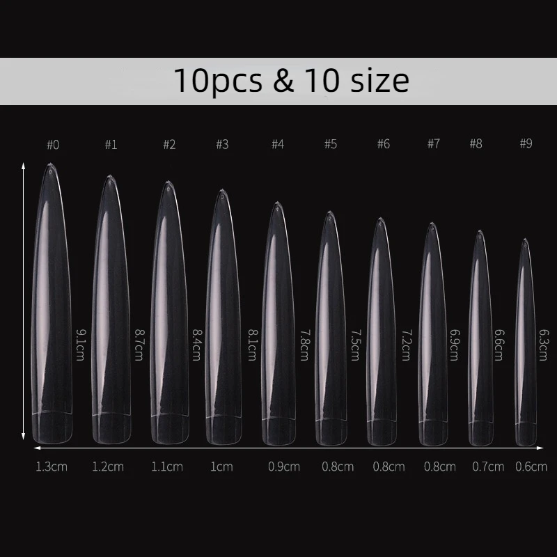 10 шт., супер длинные тонкие острые трубки для маникюра, 10 размеров