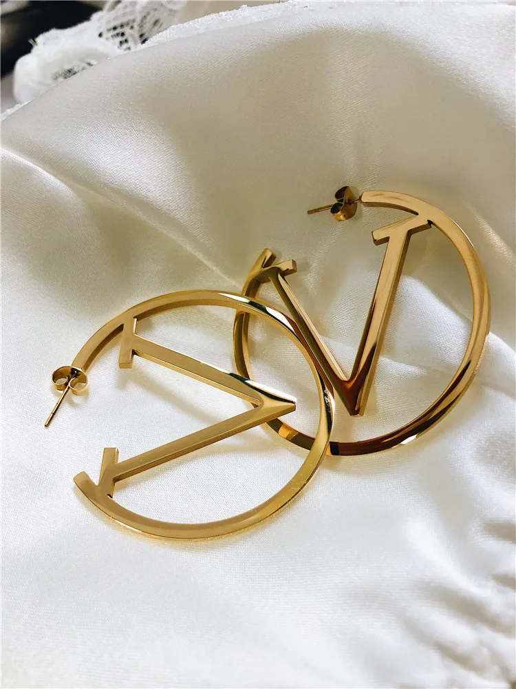 Женские серьги-кольца с V-образным вырезом, из нержавеющей стали