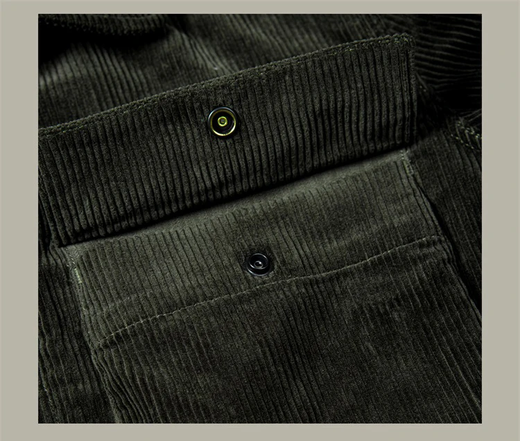 Cut вырезать из 100% хлопка высокого качества вельвет⦁ Ткань стирается для ношения⦁ Большие нагрудные карманы с клапаном⦁ Дизайн с отворотами делает его держать ветер, когда воротник встанет⦁ Регулируемые манжеты на кнопках⦁ Однотонная застежка-молния⦁ После первой стирки куртка усадится примерно на 2 см в груди и длине