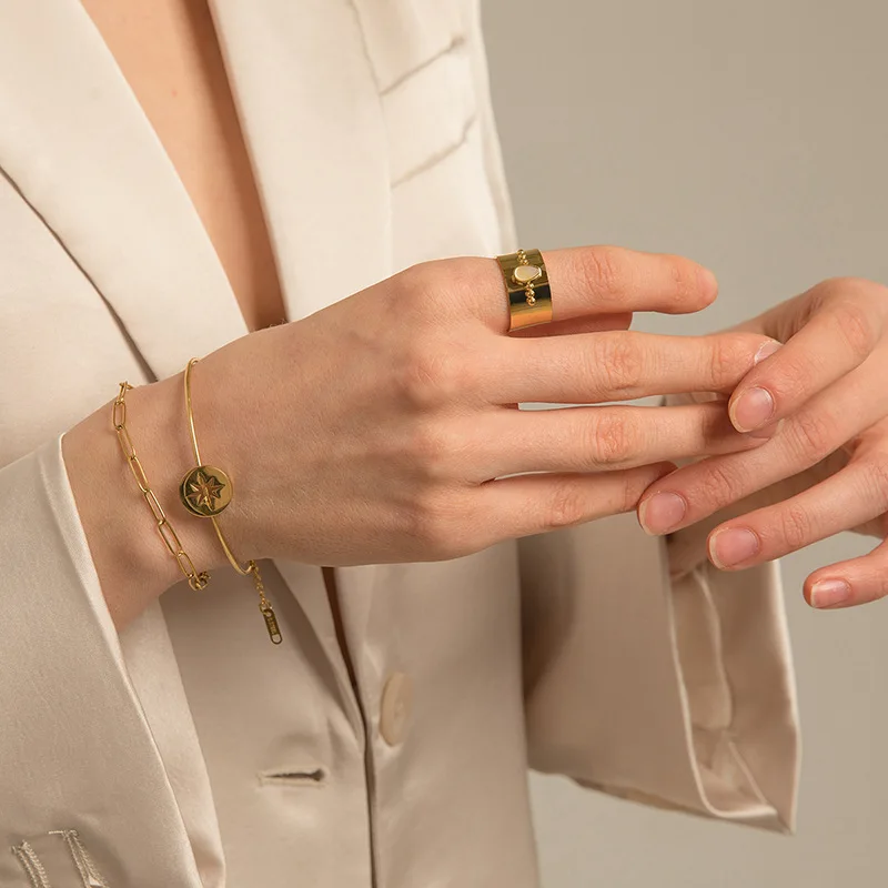 Женское Открытое кольцо в стиле панк из нержавеющей стали с белым корпусом