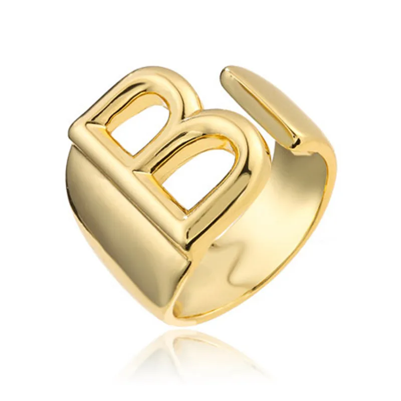 Открытое кольцо с инициалами имени и буквы A-Z, регулируемое металл...