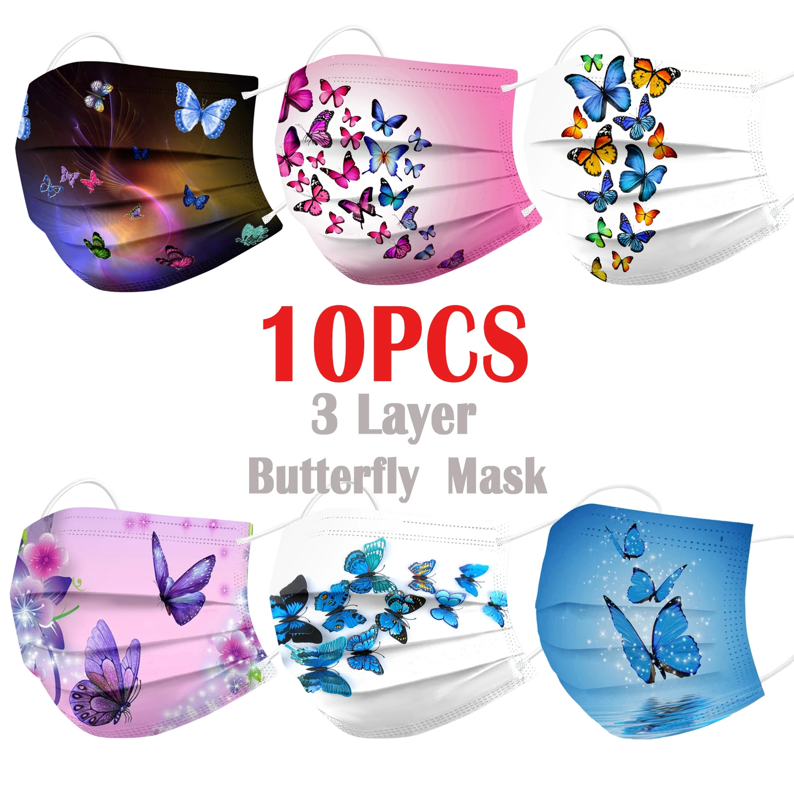 Маска для лица одноразовая, с принтом бабочек, 3 слоя, дышащая, 10 ...