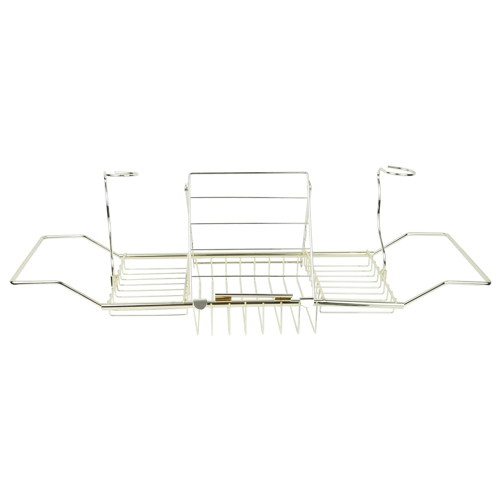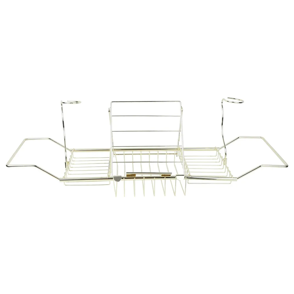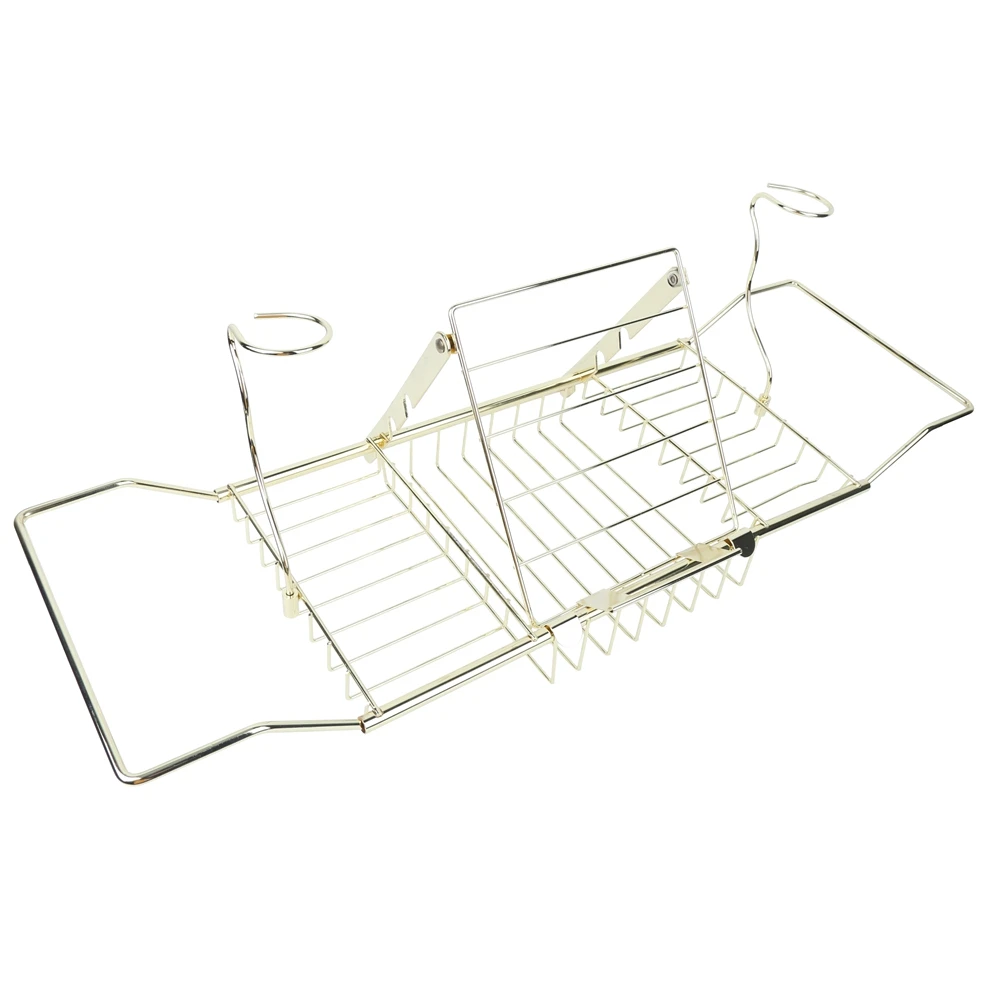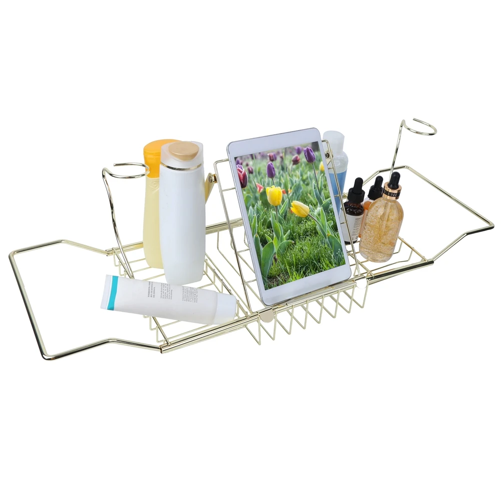 Поднос для ванны из углеродистой стали, расширяемый органайзер для ванны, полка для ванны для чтения золотого цвета