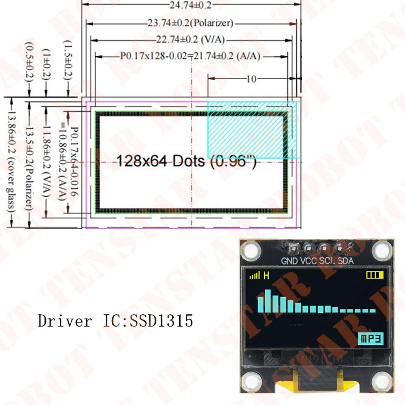 OLED-модуль SSD1306, 0,96 дюйма, белыйсинийжелтый, 128X64 IIC I2C
