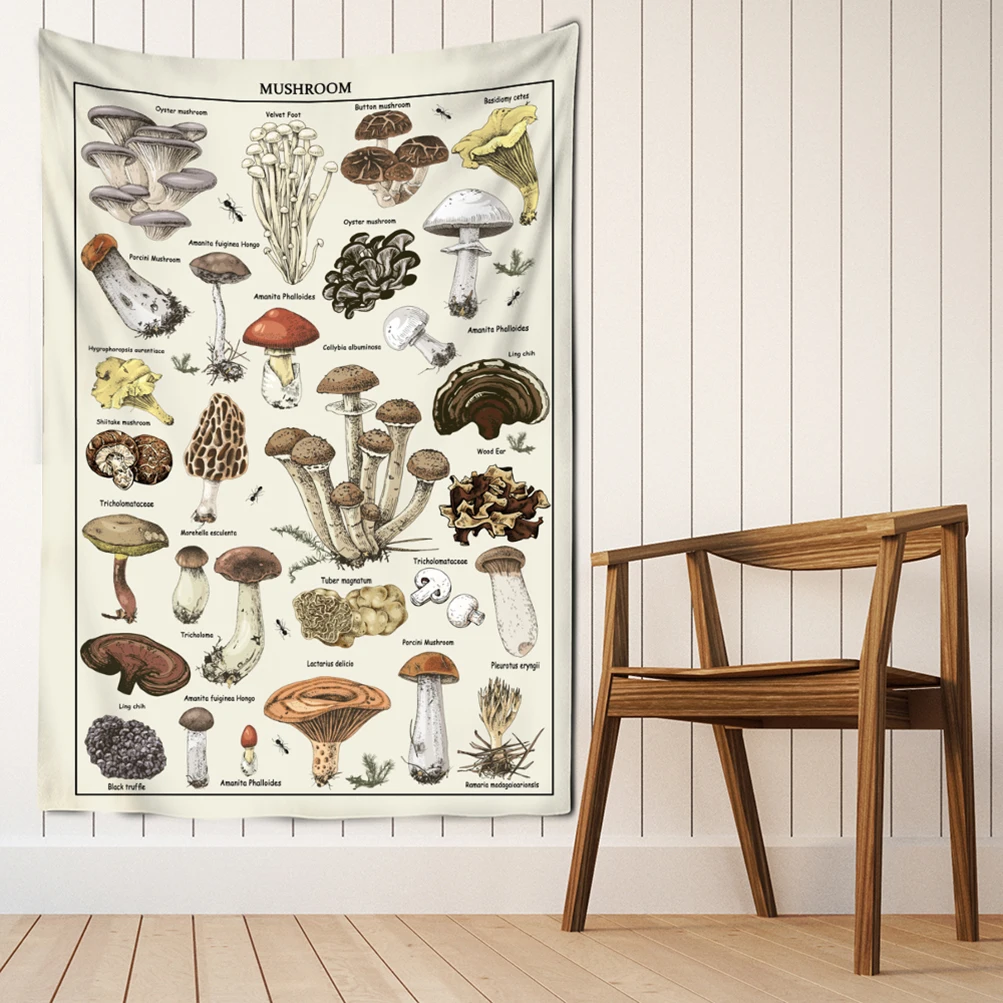Цитаты, искусственное украшение стен, микология, гриб, шампиньон, диаграмма идентификации, иллюстрация, настенное искусство, декор в стиле бохо