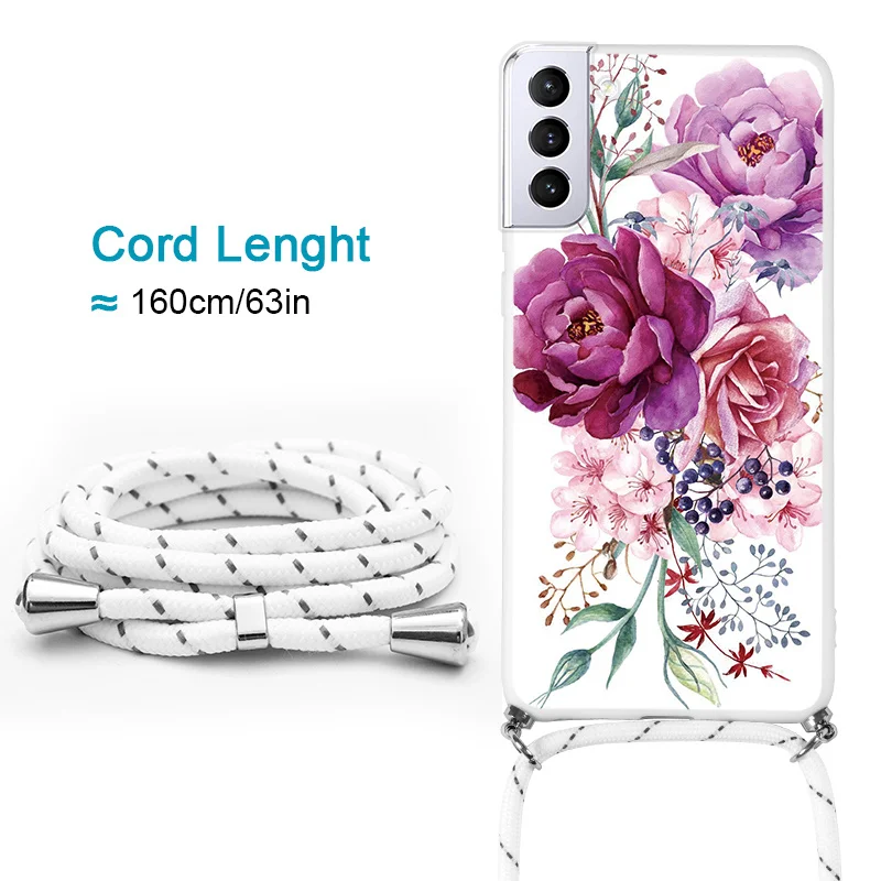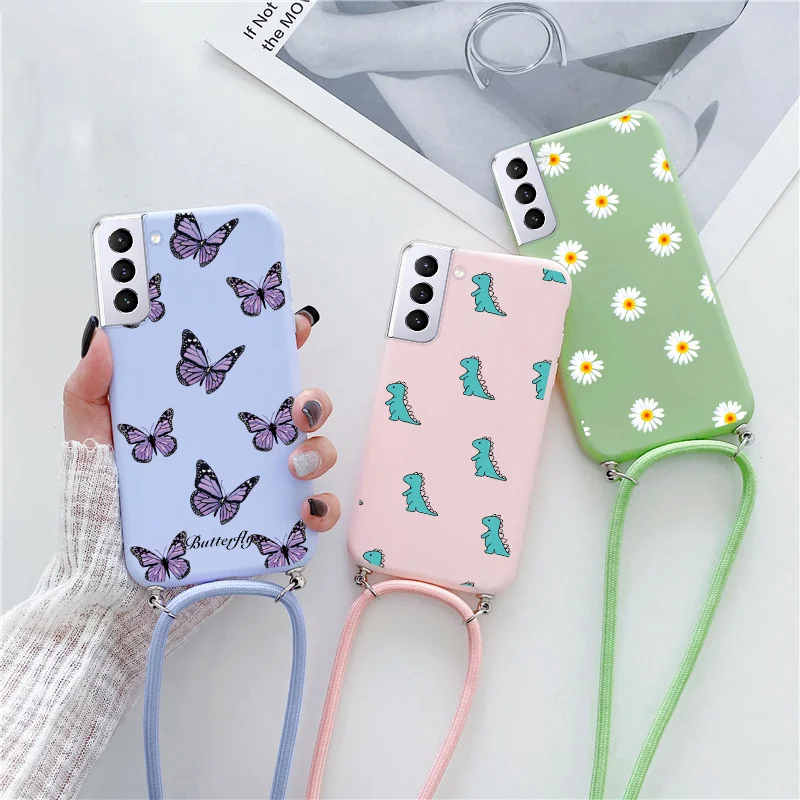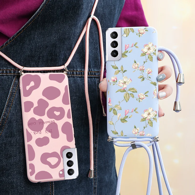 Ожерелье ремешок чехол для Samsung Galaxy S22 Plus ультра цветок телефонные чехлы для Samsung S22ultra S 22 plus + ремешок бампер чехлы