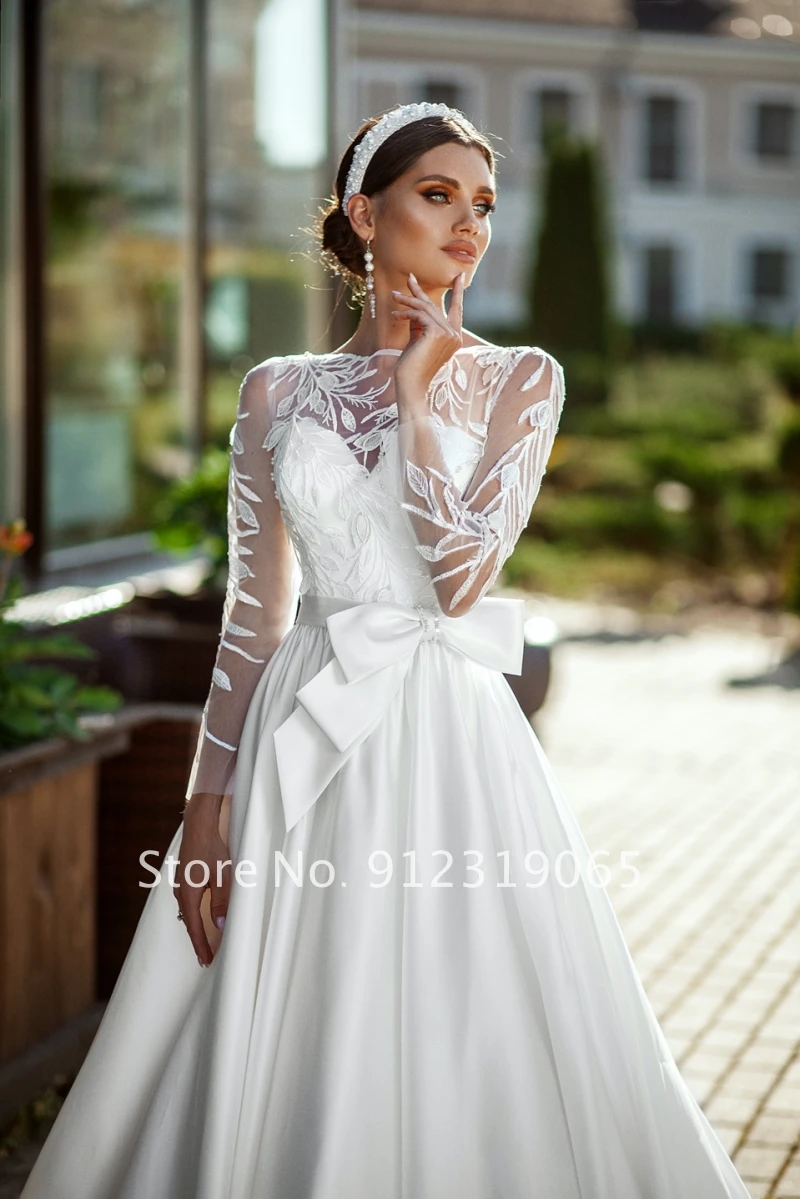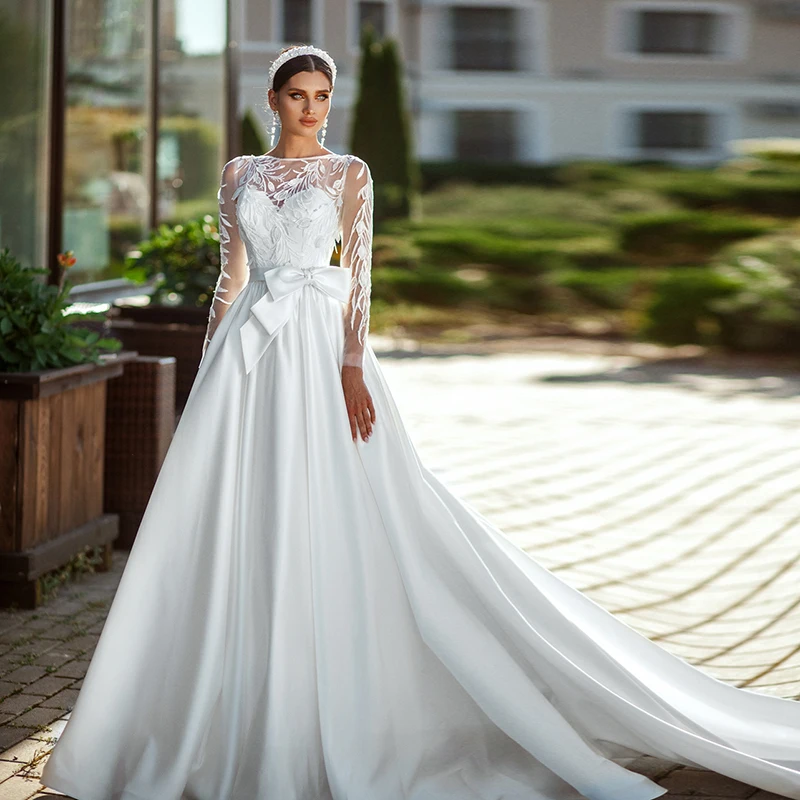Женское свадебное платье It's yiiya, белое кружевное платье с длинным рукавом и глубоким круглым вырезом на лето 2022