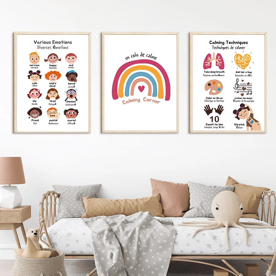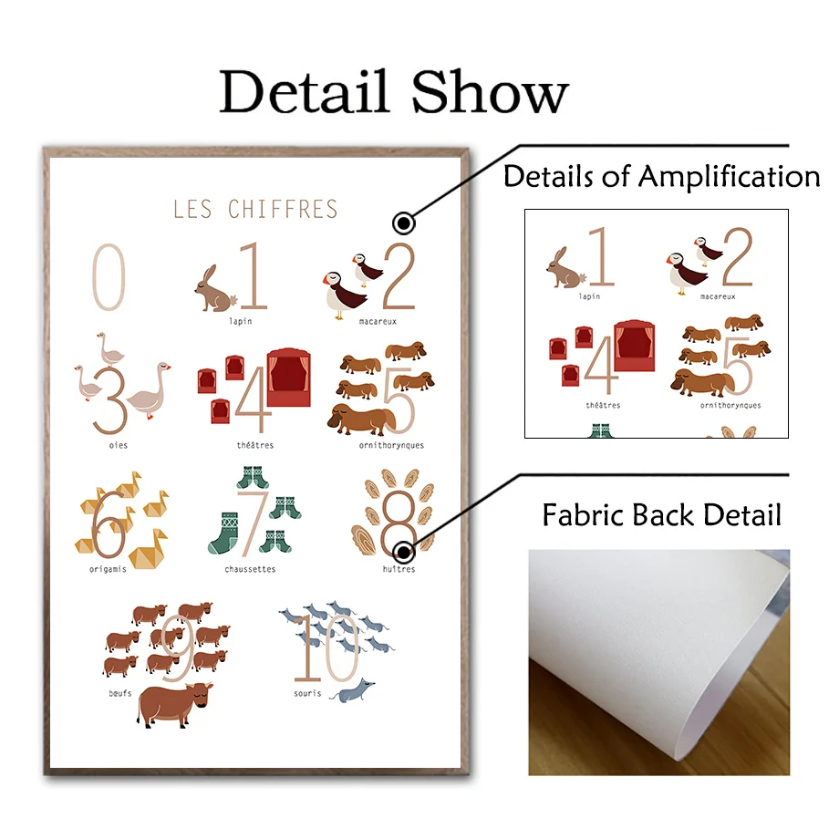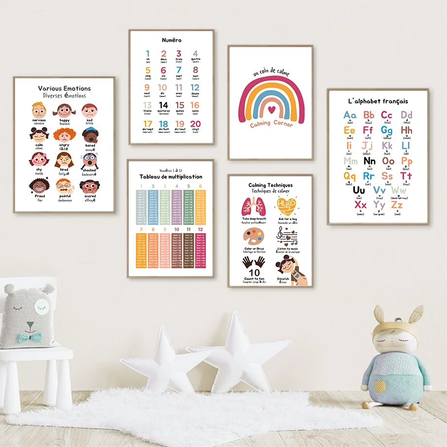 Картина на холсте с французским алфавитом и цифрами Радуга для детского сада, настенные картины и принты в скандинавском стиле, декор для детской комнаты