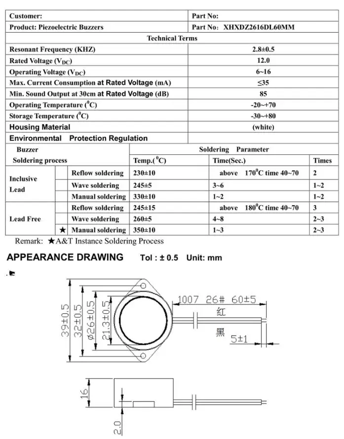 2616 активный пьезоэлектрический зуммер 26*16 мм водонепроницаемый зуммер тревога герметичный водонепроницаемый 3-24 в 26x16 мм Сделай Сам