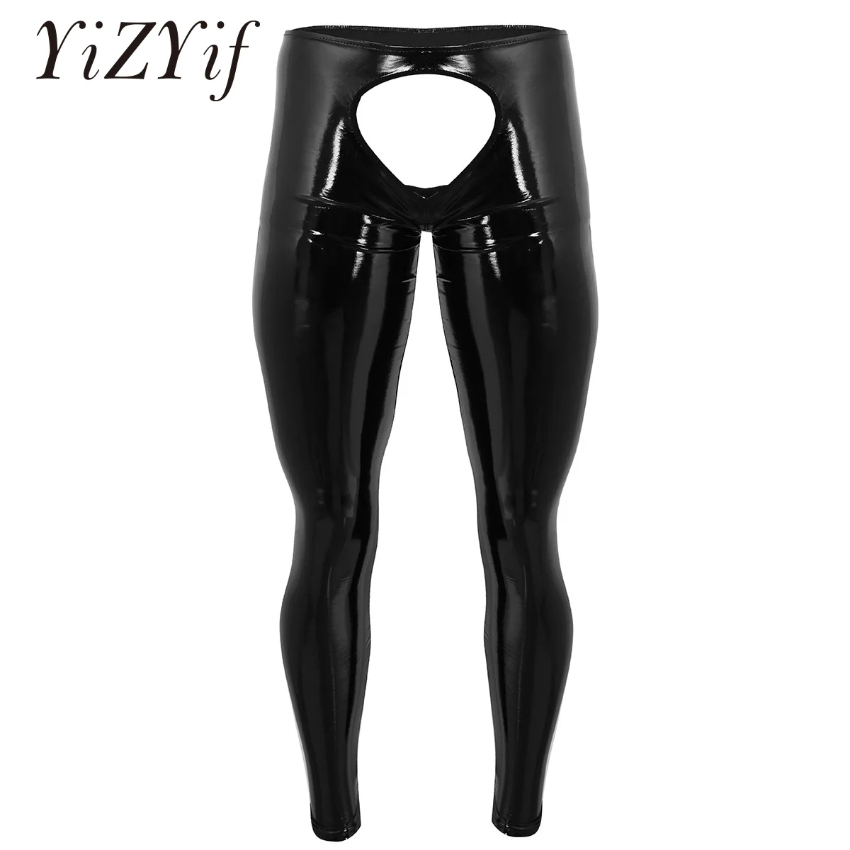 # M-XXXL, черное мужское белье, блестящие, лакированная кожа, открытая спина и открытая сумка, обтягивающие штаны, леггинсы, брюки