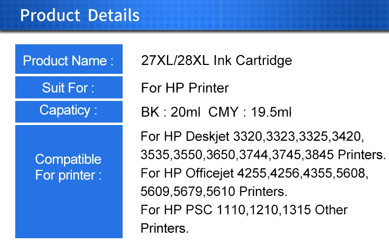 Если ваша модель чернильного картриджа не 27 28or 27/28XL, пожалуйста, свяжитесь с нами, и мы поможем вам купить правильную модель.