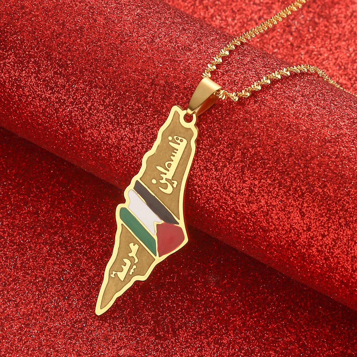 Золотой цвет эмали ожерелья из нержавеющей стали с картой Израиля и Палестины, женские подарки, еврейские модные серебряные Этнические украшения