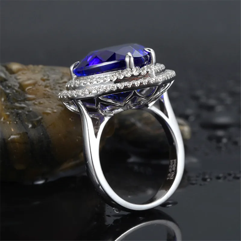 Кольцо женское из цинкового сплава, с синим цирконием и кристаллом ...