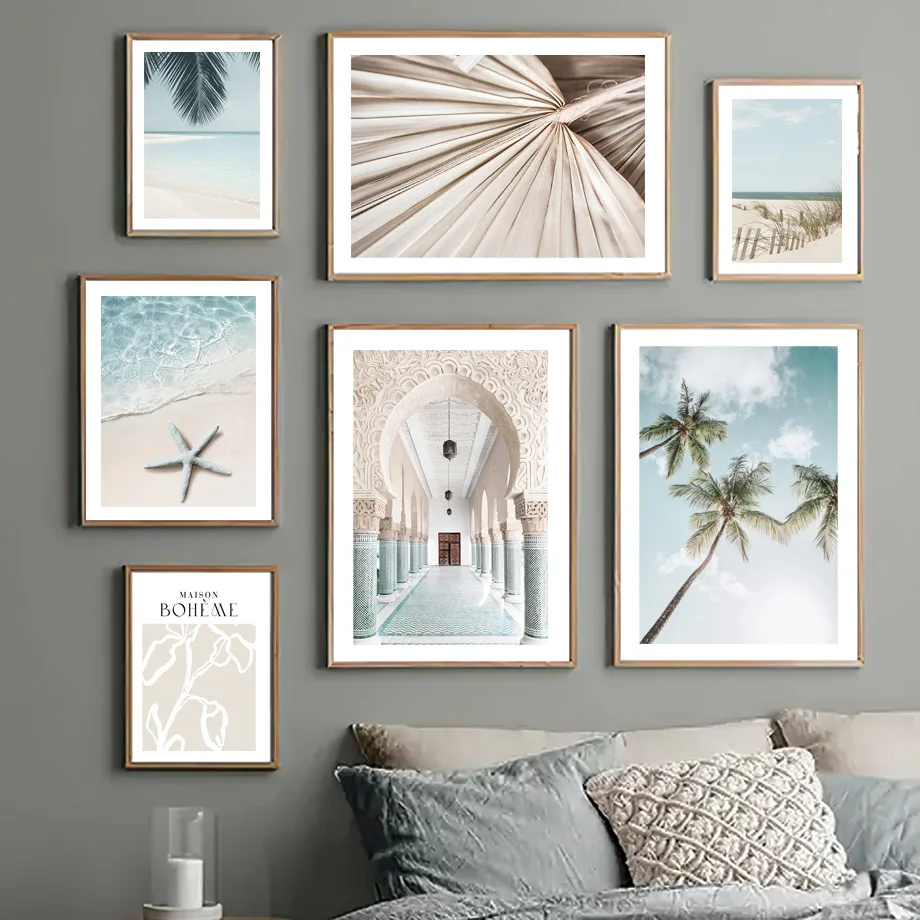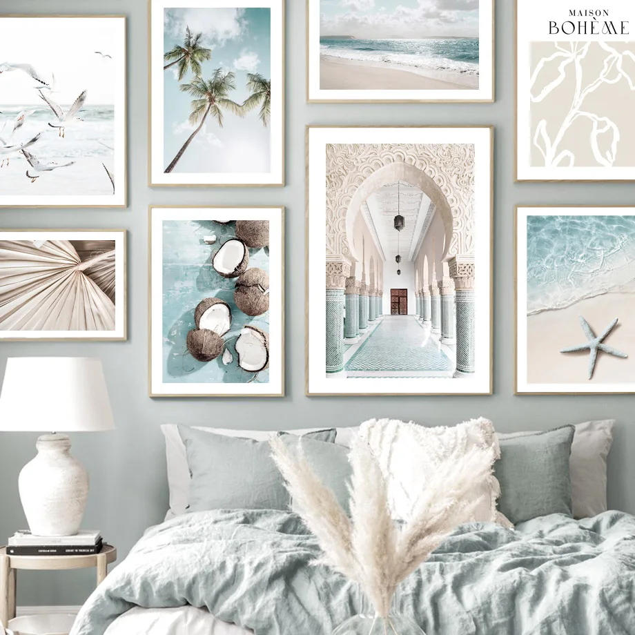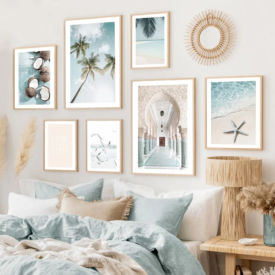 Марокканская синяя Морская звезда Пляж Кокосовая пальма настенная живопись холст скандинавские постеры и принты настенные картинки для декора гостиной
